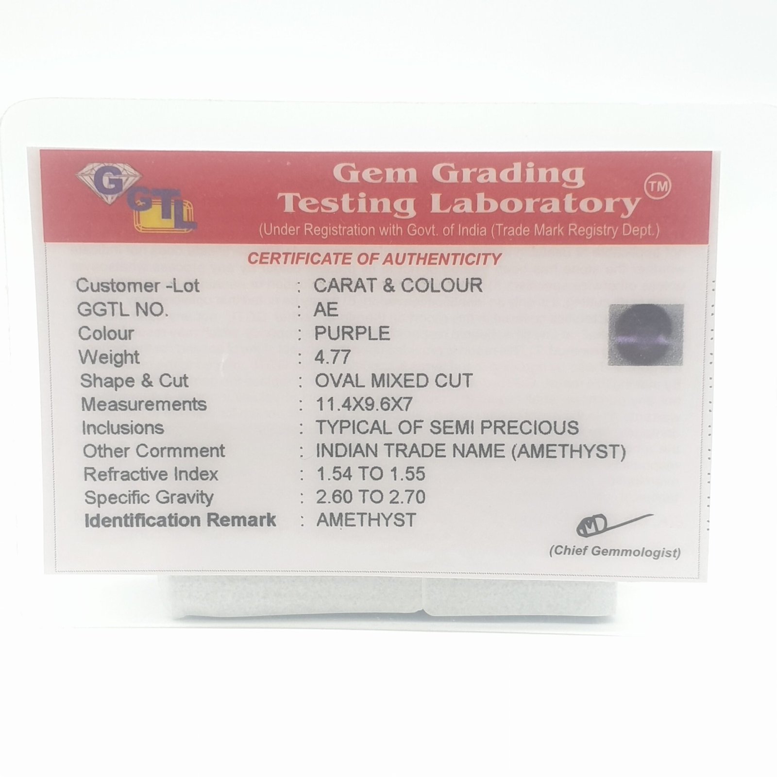 Natural Untreated Amethyst, certified by DDGTL. Contact us for further Certification by GIA / GII / IGI and Others.