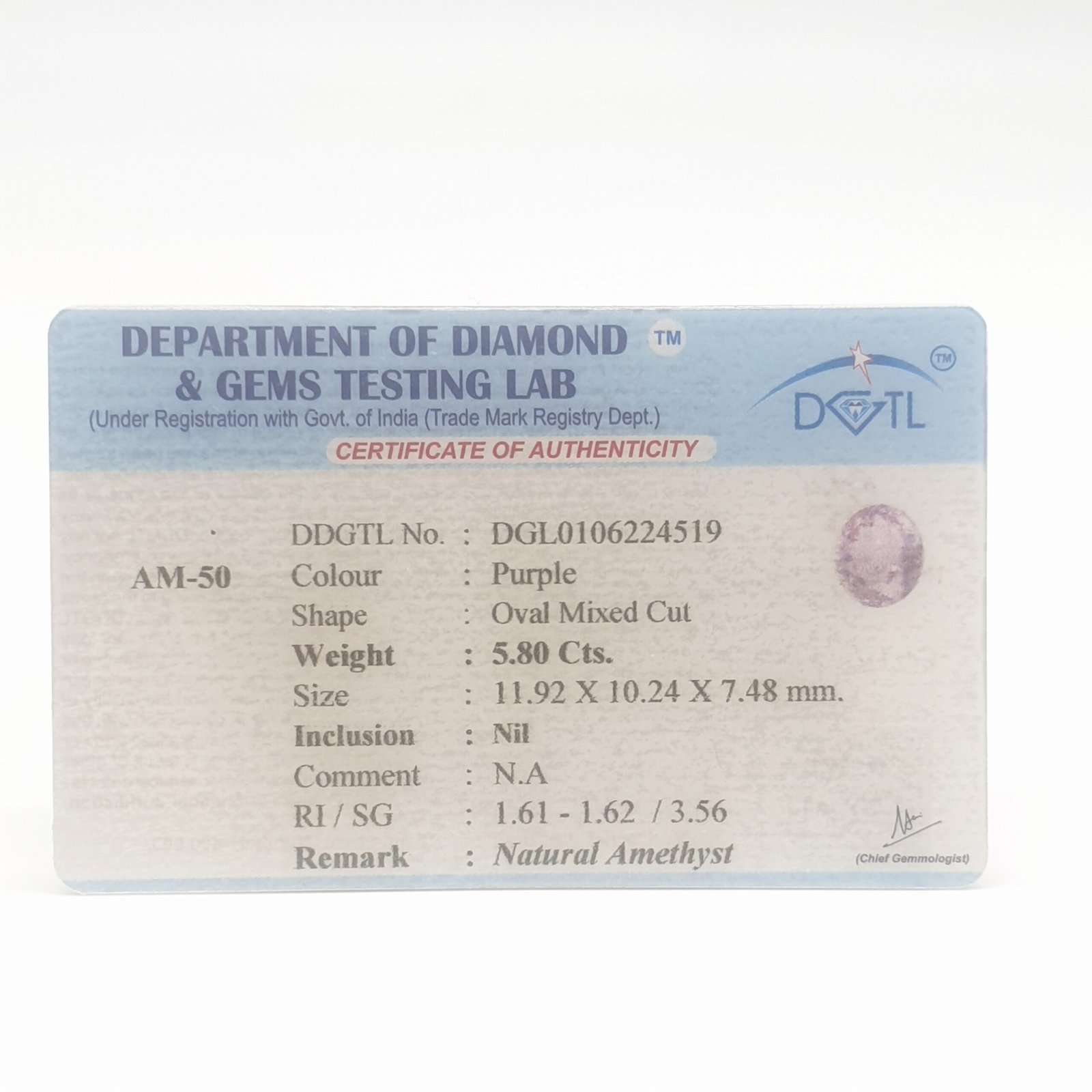 Natural Untreated Amethyst, certified by DDGTL. Contact us for further Certification by GIA / GII / IGI and Others.