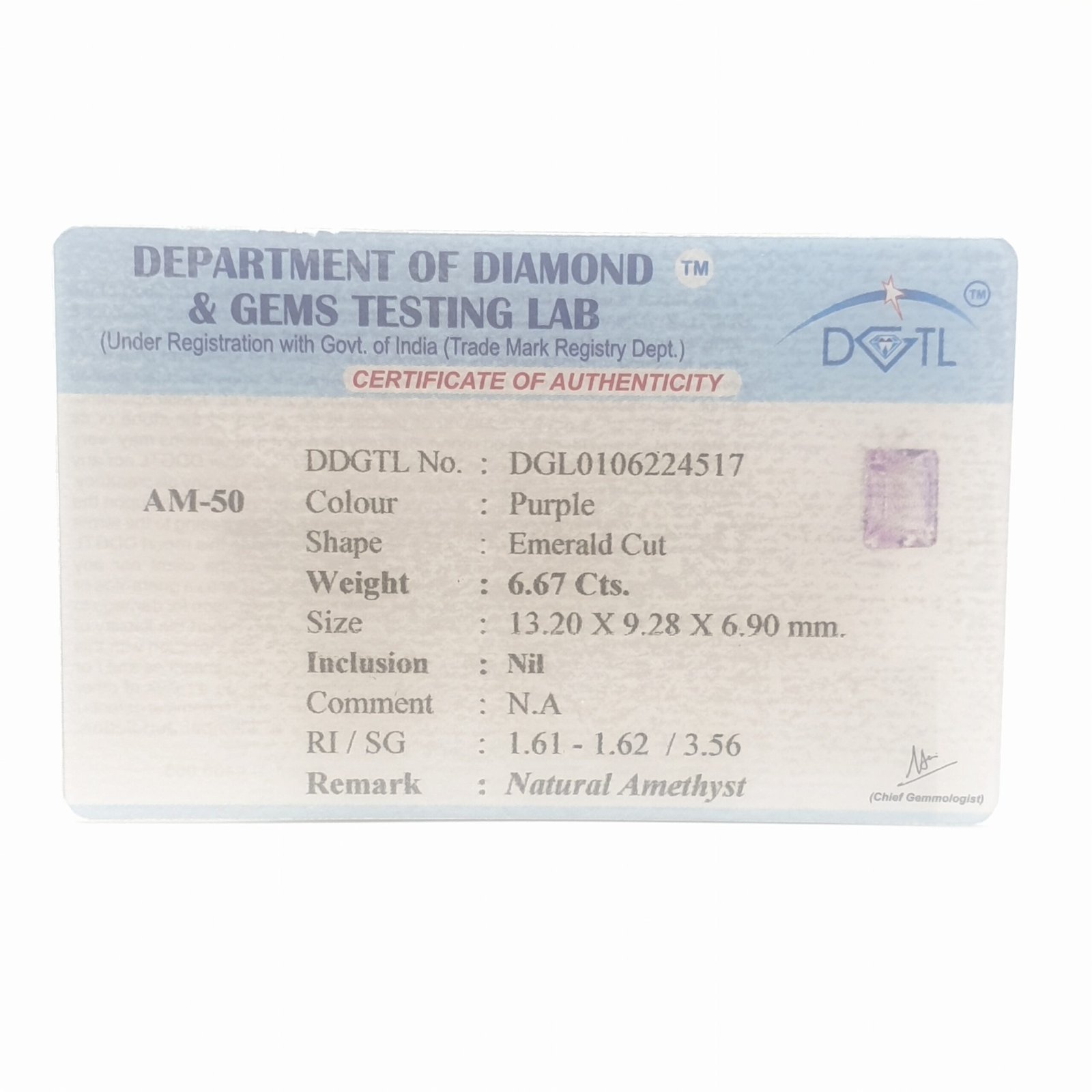 Natural Untreated Amethyst, certified by DDGTL. Contact us for further Certification by GIA / GII / IGI and Others.