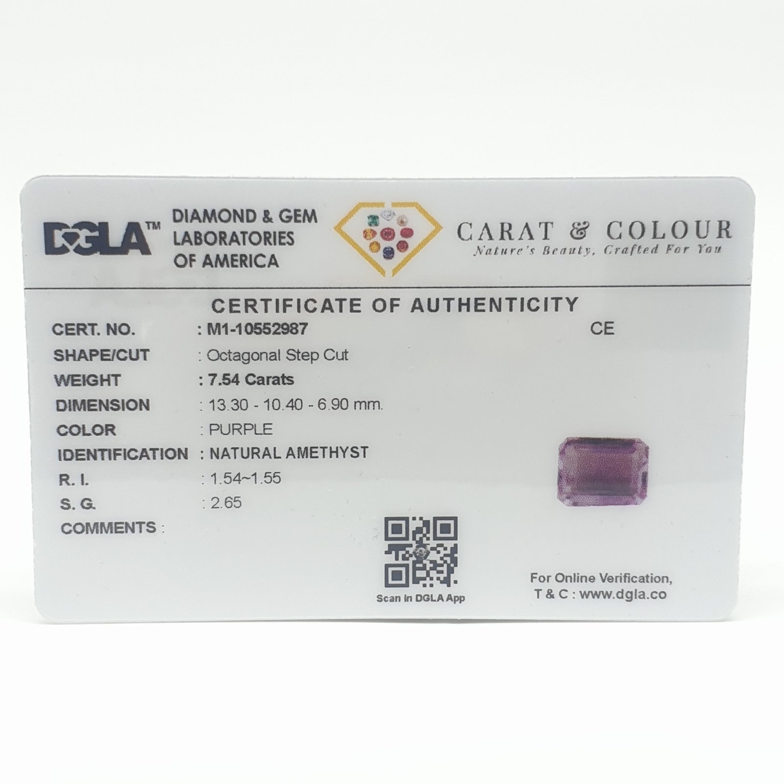 Natural Untreated Amethyst, certified by DGLA. Contact us for further Certification by GIA / GII / IGI and Others.