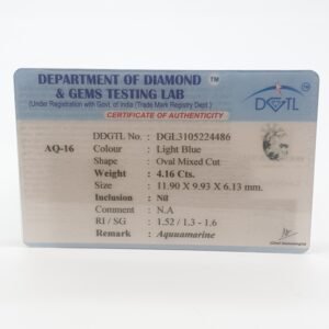 Natural Aquamarine, certified by DDGTL. Contact us for further Certification by GIA / GII / IGI and Others.