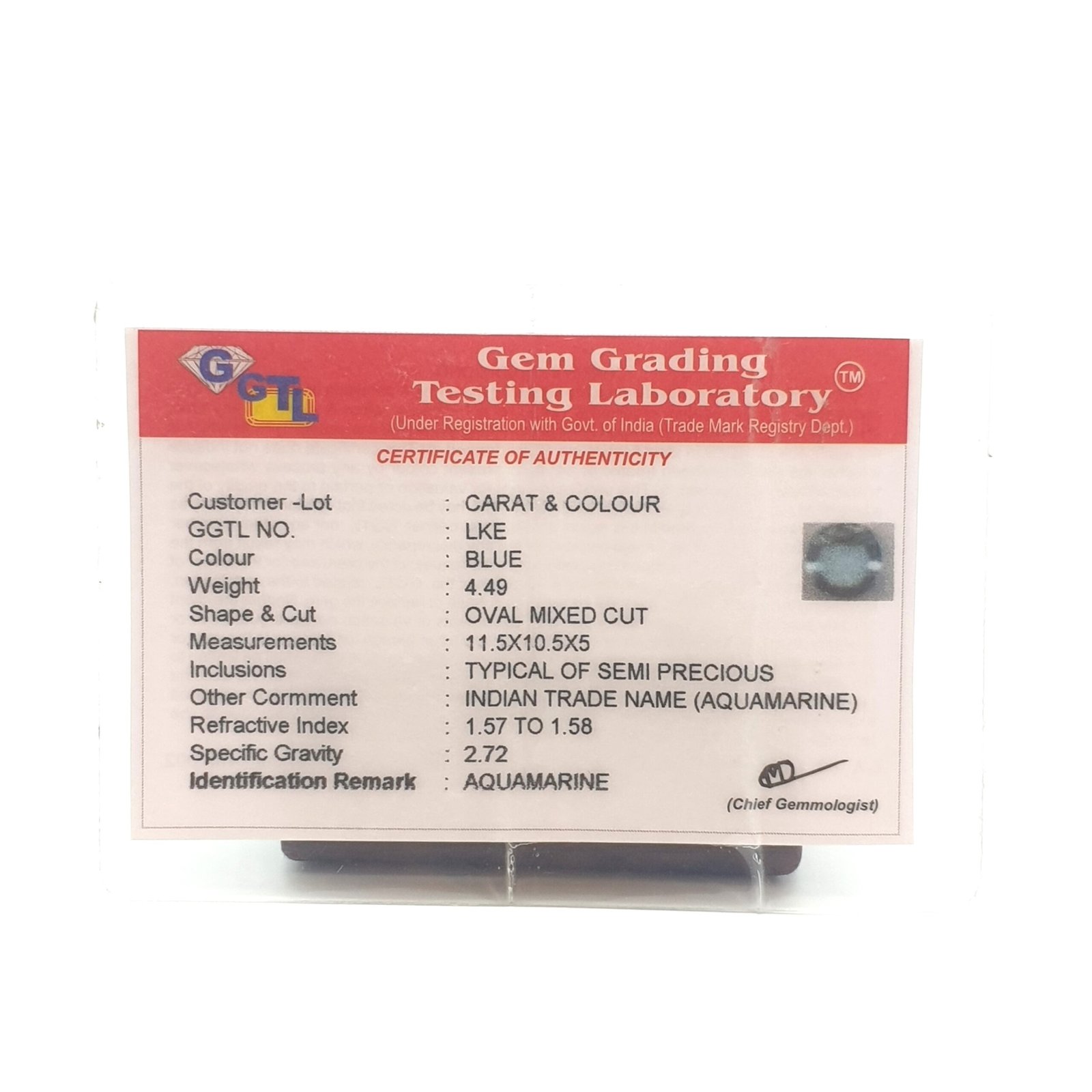 Natural Aquamarine, certified by GGTL. Contact us for further Certification by GIA / GII / IGI and Others.