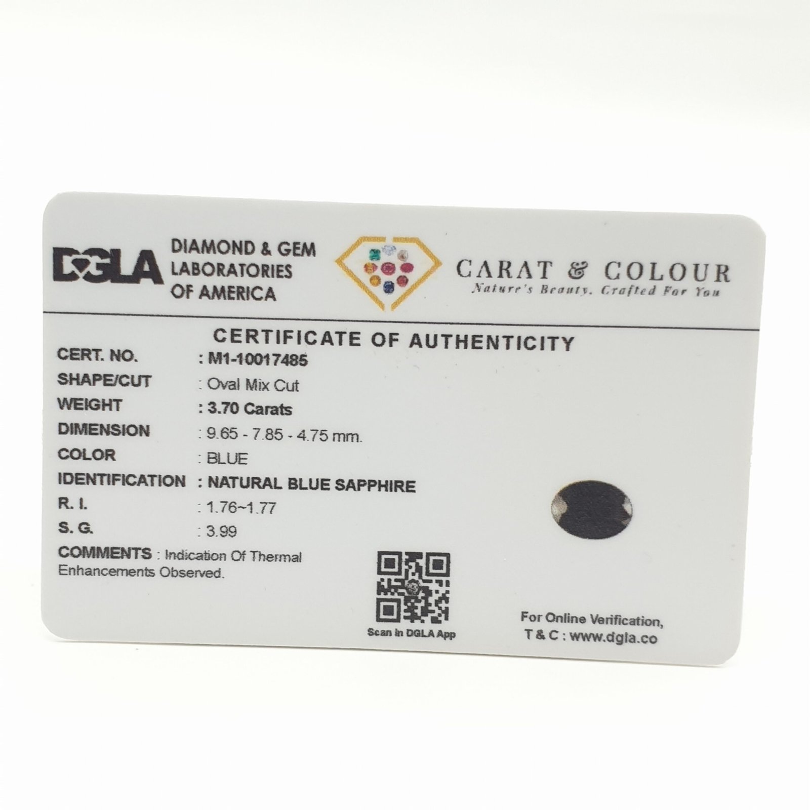 Natural Diffused Blue Sapphire (Neelam) from Bangkok, certified by DGLA. Contact us for further Certification by GIA / GII / IGI and Others
