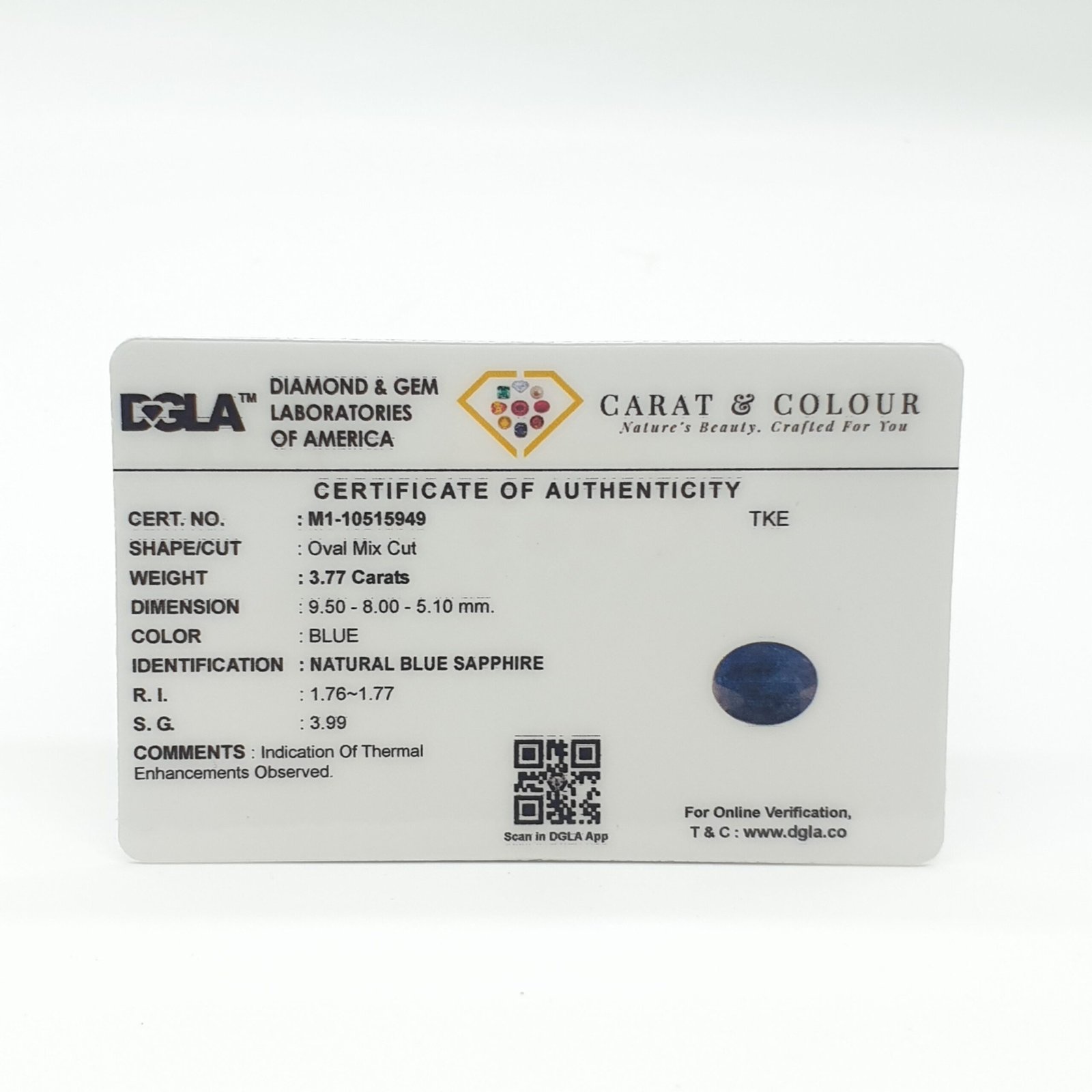 Natural Treated Blue Sapphire (Neelam) from Bangkok, certified by DGLA. Contact us for further Certification by GIA / GII / IGI and Others