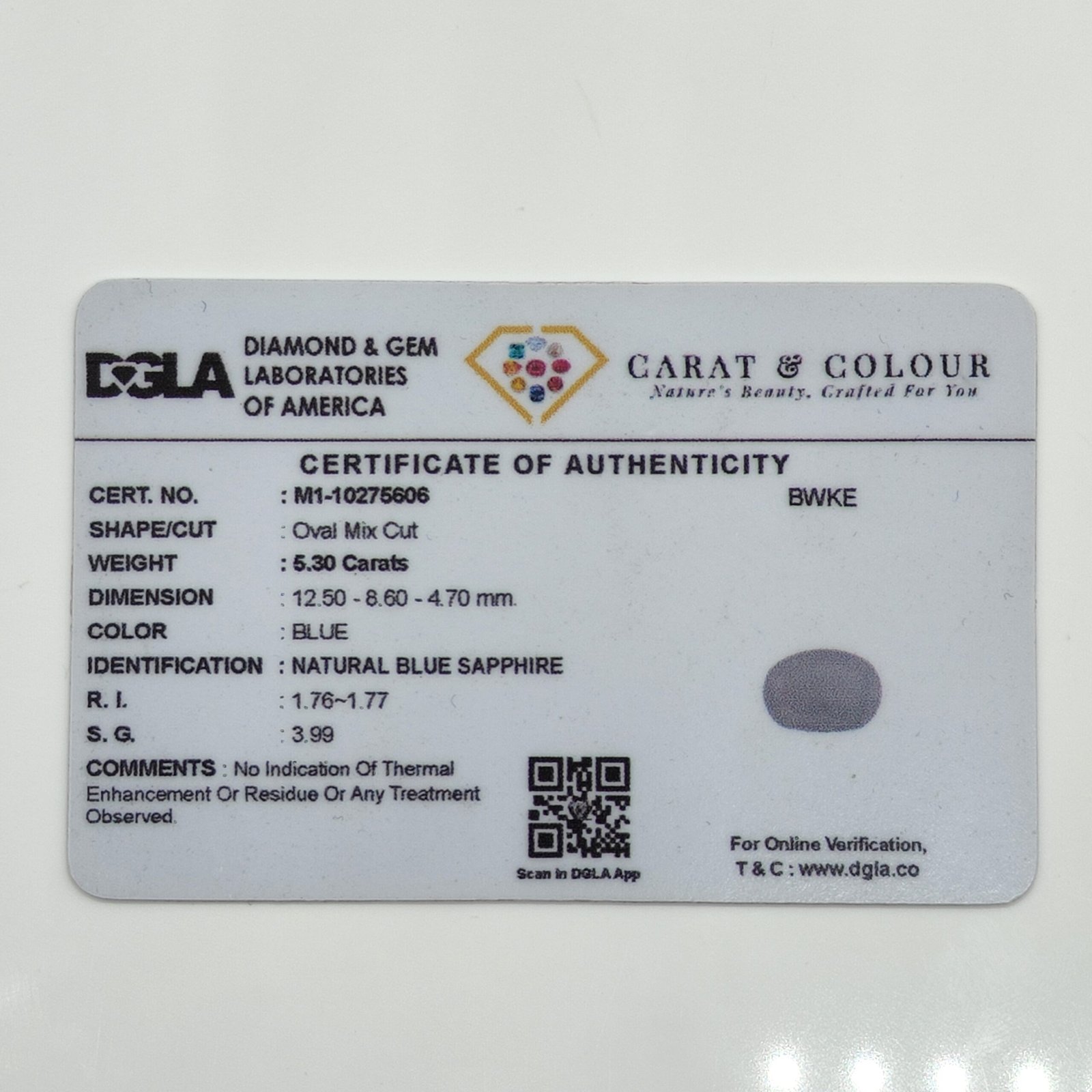 Natural unheated (untreated) Blue Sapphire (Neelam) from ceylon , certified by DGLA. Contact us for further Certification by GIA / GII / IGI and Others