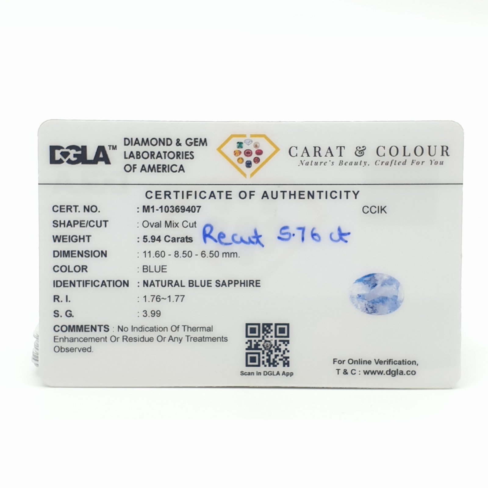 | Shape / Cut | Oval Cut |