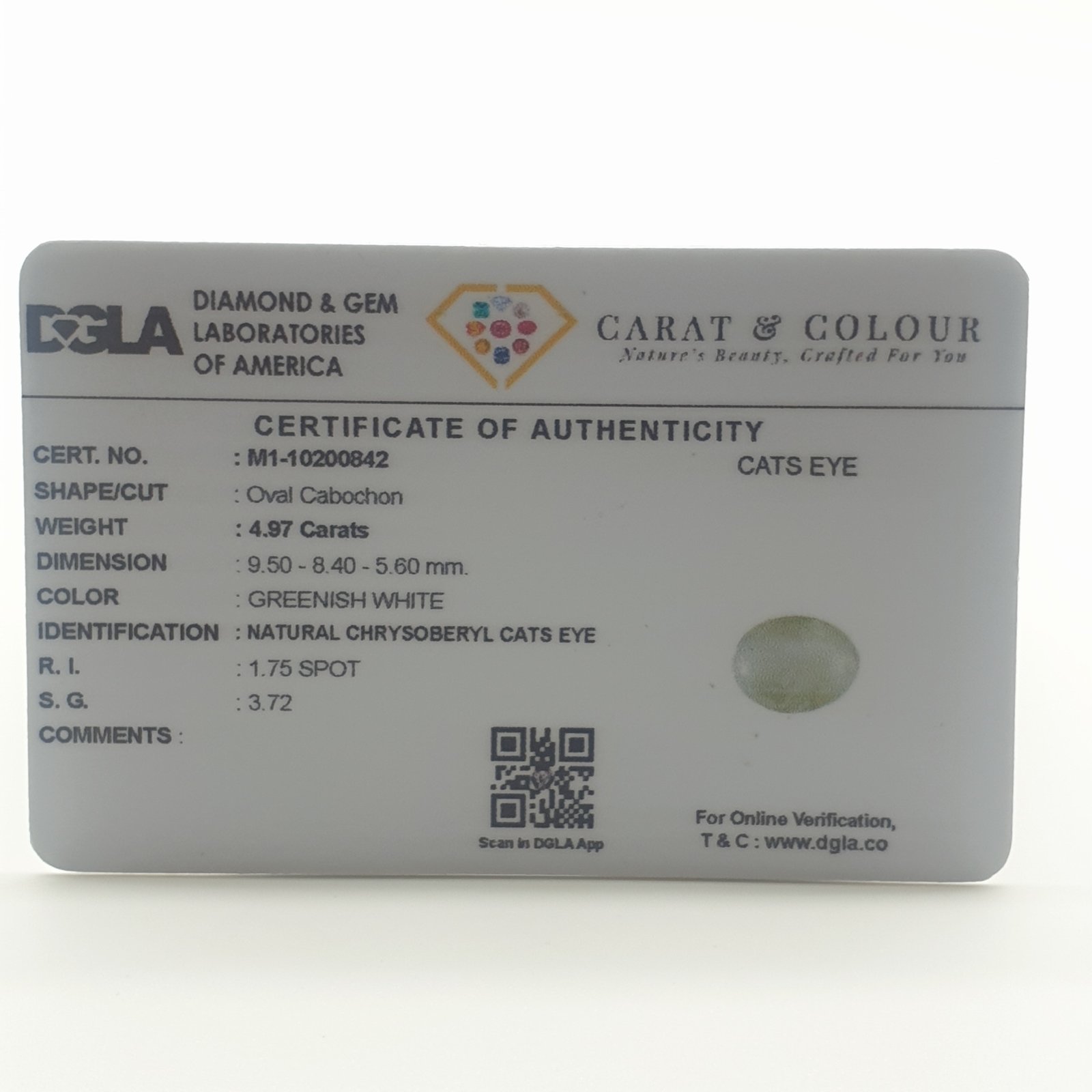 Natural Untreated Cat’s Eye, certified by DGLA. Contact us for further Certification by GIA / GII / IGI and Others.