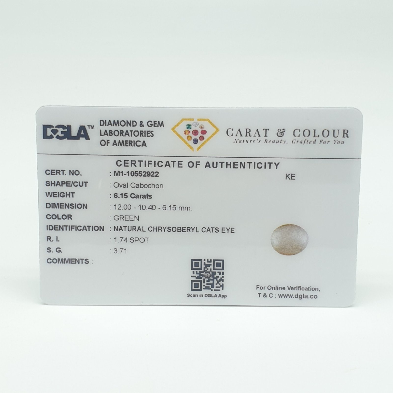 Natural and Certified Untreated Cat’s Eye (Lehsuniya), certified by DGLA. Contact us for further Certification by GIA / GII / IGI and Others.