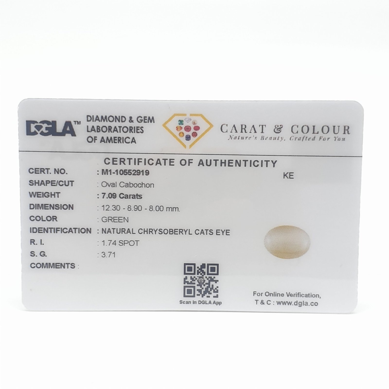 Natural and Certified Untreated Cat’s Eye (Lehsuniya), certified by DGLA. Contact us for further Certification by GIA / GII / IGI and Others.