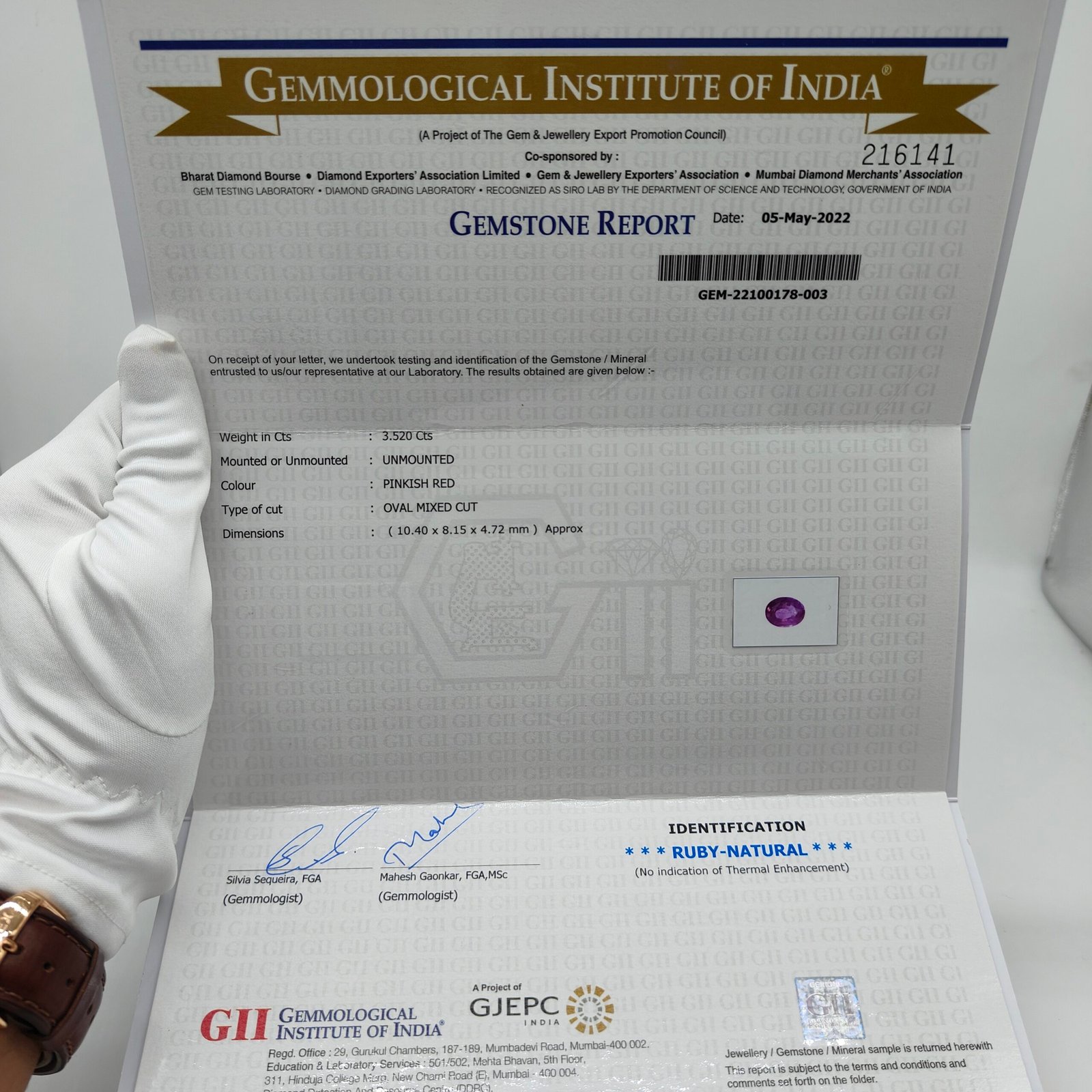 Natural Untreated Ruby (Manak) from Madagascar, Certified by GII. This is an Exclusive piece which we have handfuly selected from the rest of the Inventory.