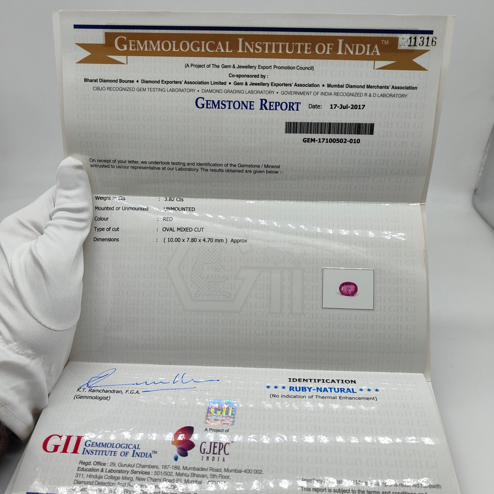 Natural Untreated Ruby (Manak) from Madagascar, Certified by GII. This is an Exclusive piece which we have handfuly selected from the rest of the Inventory.