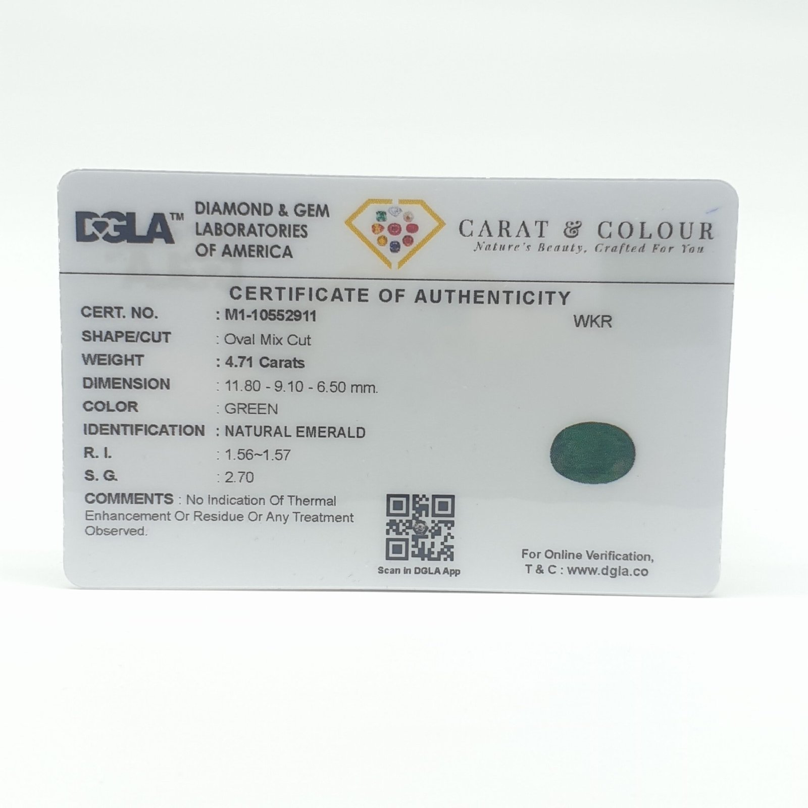 Natural Untreated Zambian Emerald, certified by DGLA. Contact us for further Certification by GIA / GII / IGI and Others.