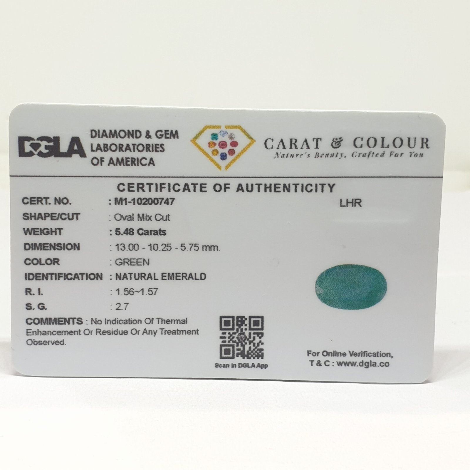 Natural Untreated Zambian Emerald, certified by DGLA. Contact us for further Certification by GIA / GII / IGI and Others.