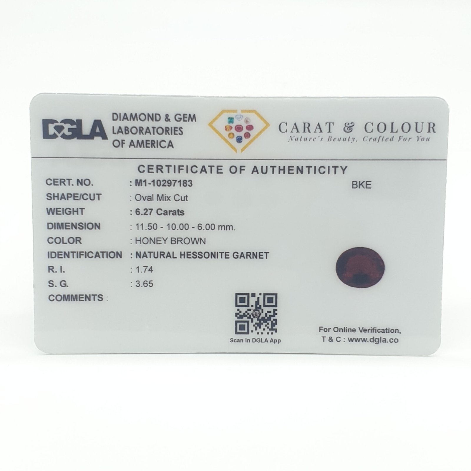 Natural Untreated Hessonite Garnet (Gomedh) , certified by DGLA. Contact us for further Certification by GIA / GII / IGI and Others.