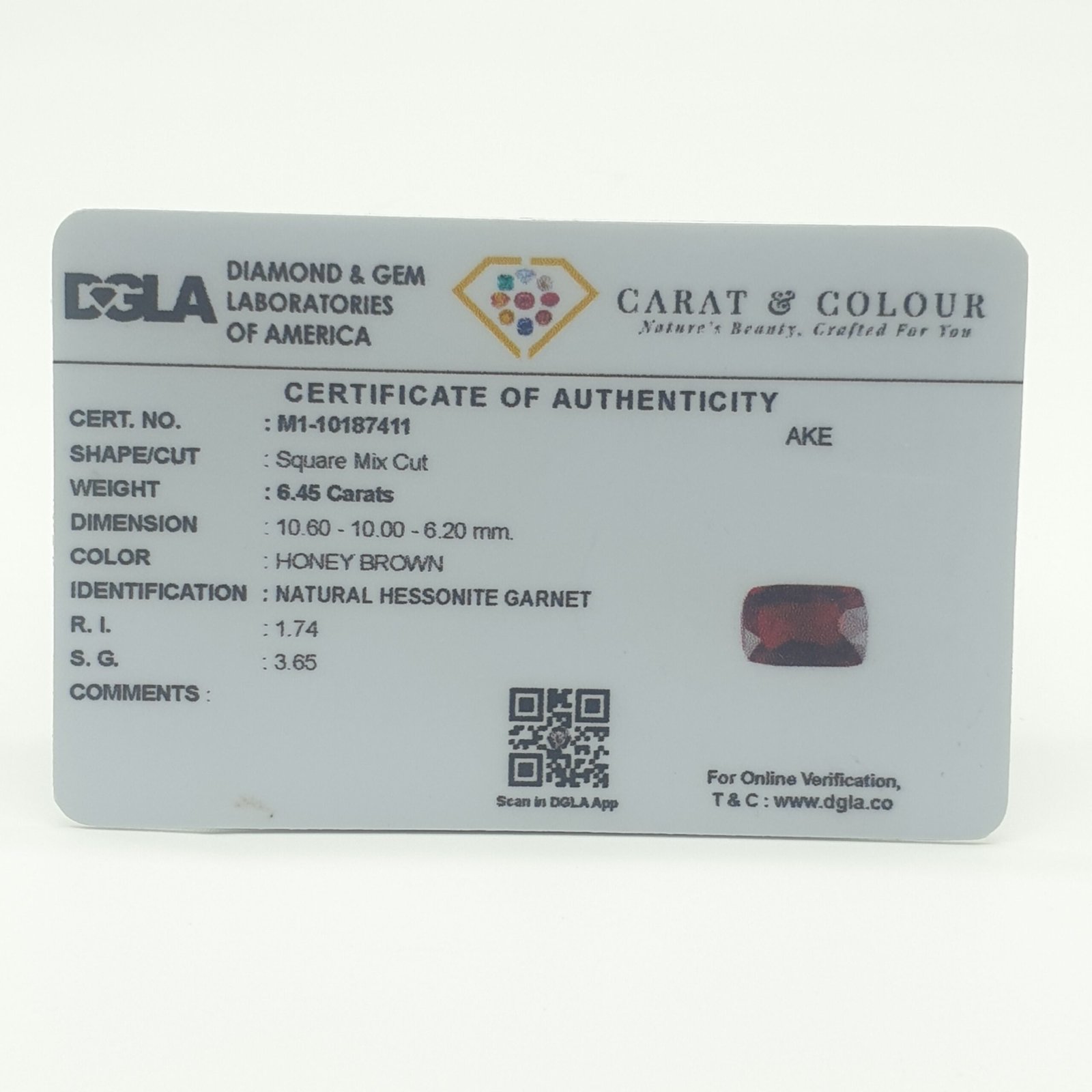Natural Untreated Hessonite Garnet (Gomedh) , certified by DGLA. Contact us for further Certification by GIA / GII / IGI and Others.