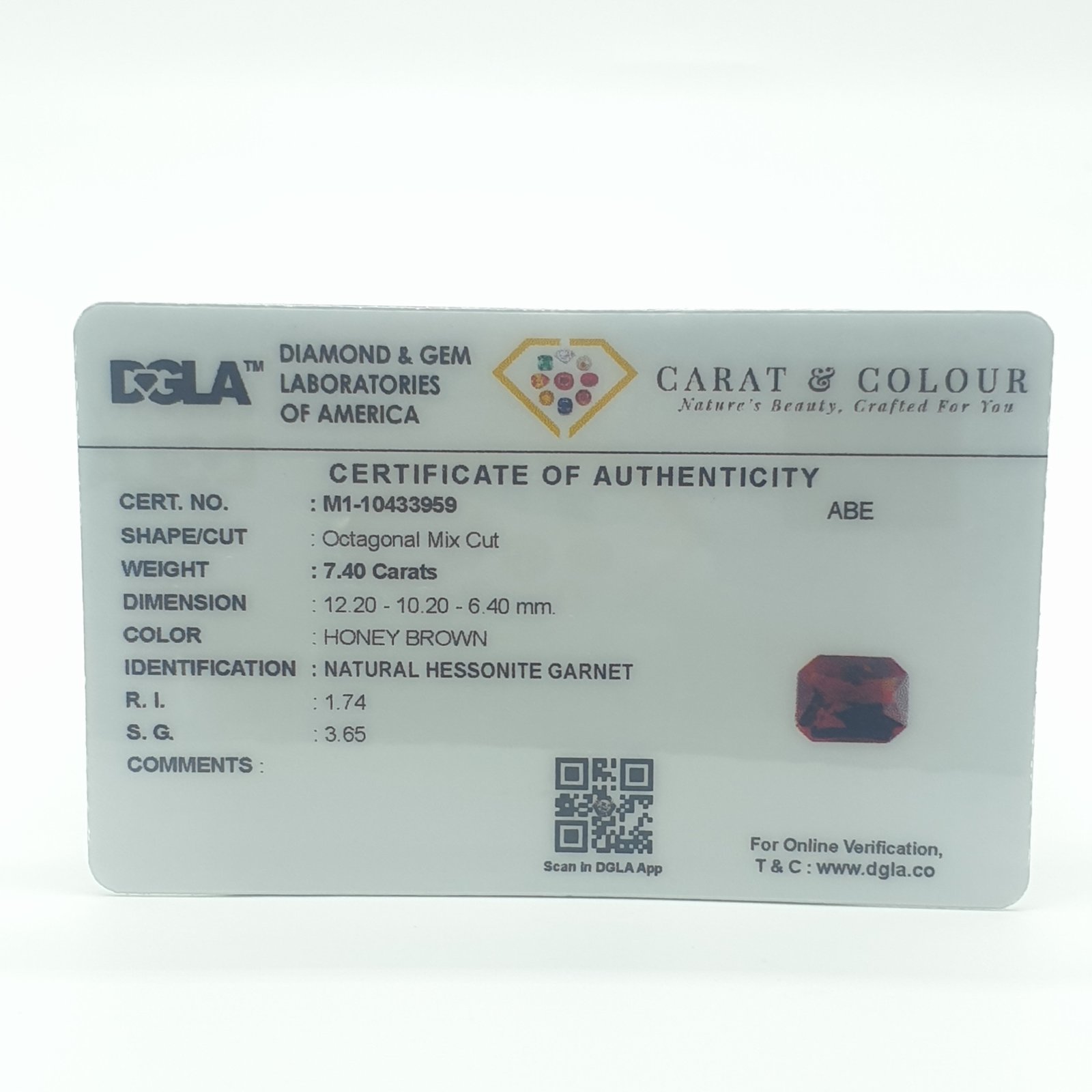 Natural Untreated Hessonite Garnet (Gomedh) , certified by DGLA. Contact us for further Certification by GIA / GII / IGI and Others.