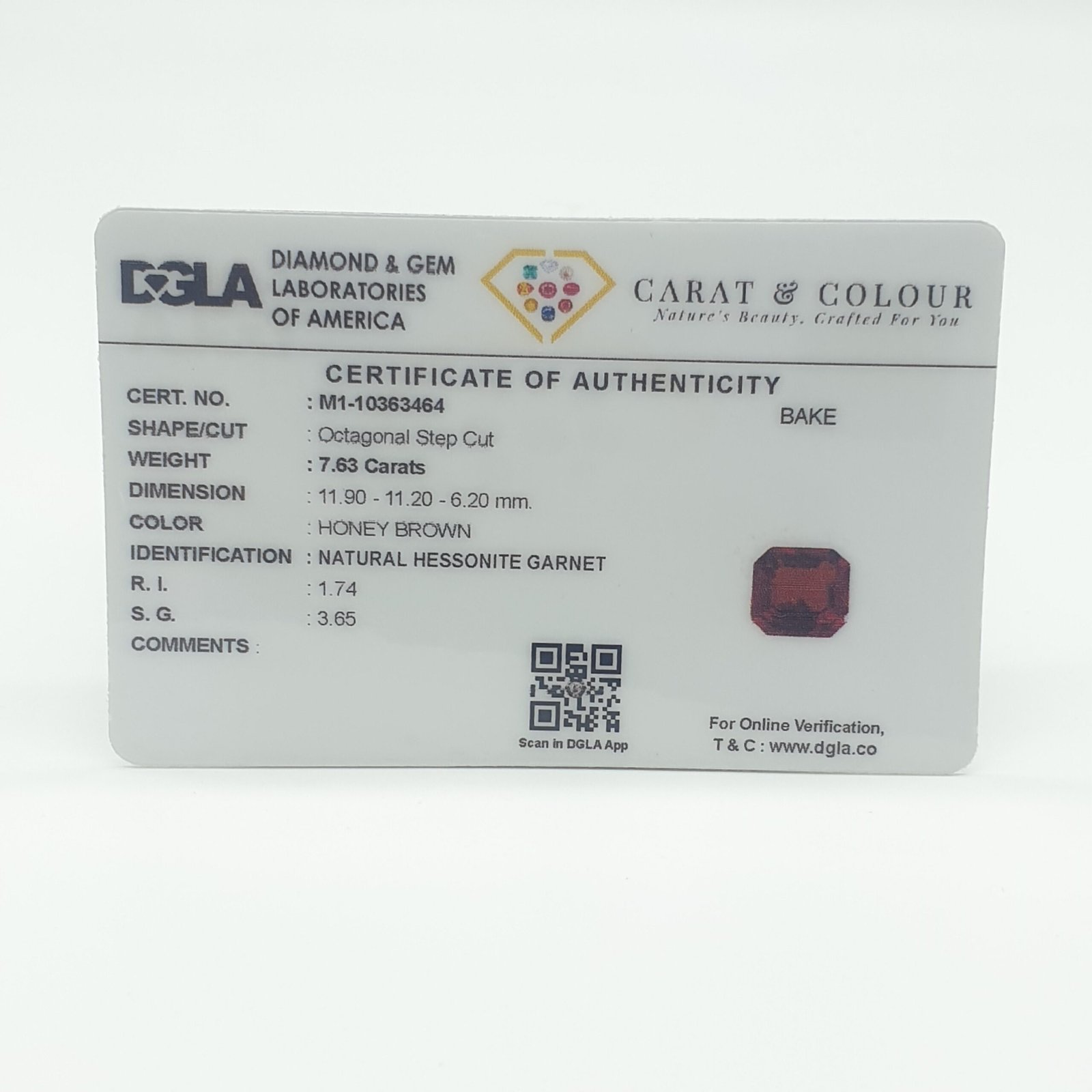 Natural Untreated Hessonite Garnet (Gomedh) , certified by DGLA. Contact us for further Certification by GIA / GII / IGI and Others.