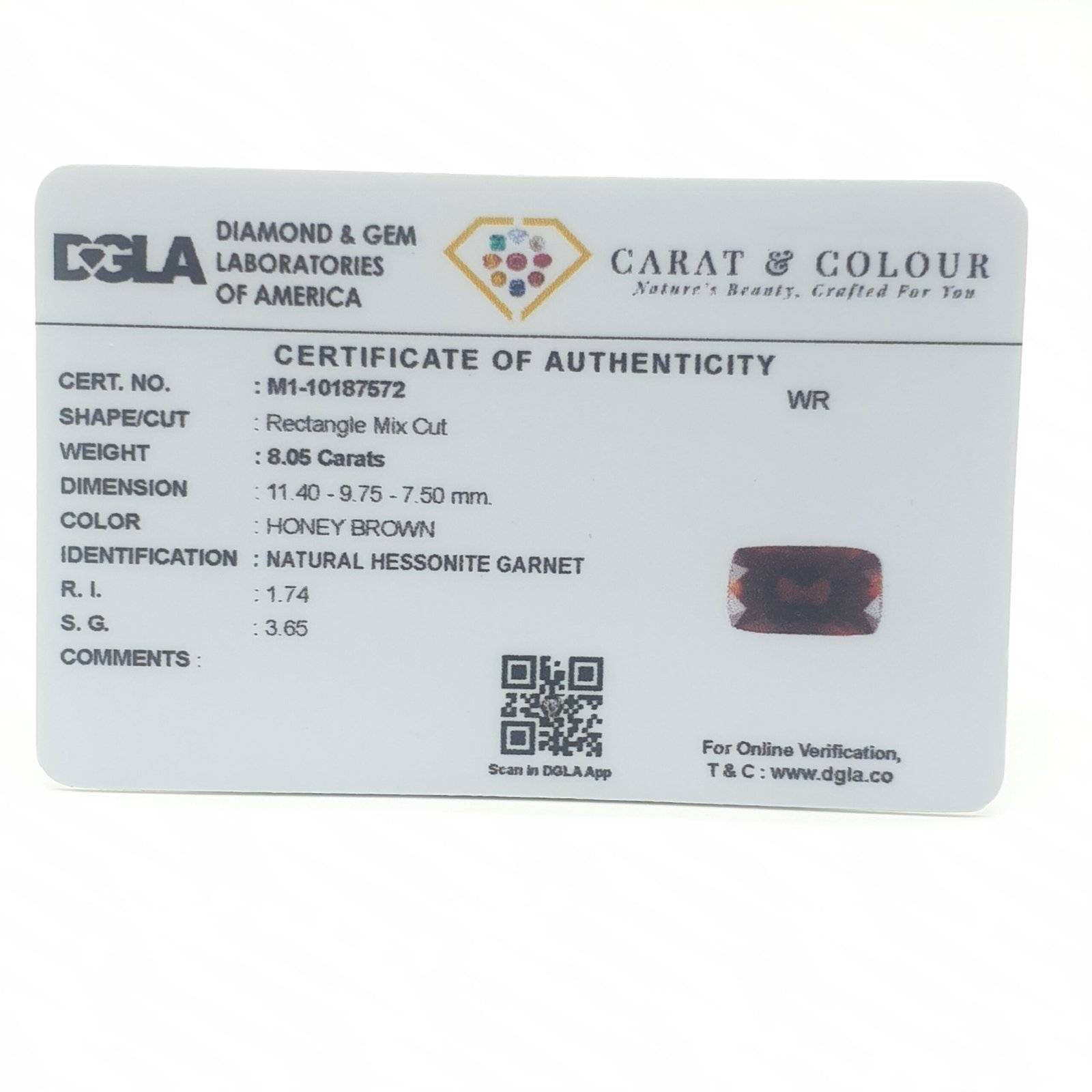 Natural Untreated Hessonite Garnet (Gomedh) , certified by DGLA. Contact us for further Certification by GIA / GII / IGI and Others.