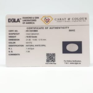 Natural Untreated Autralian White Opal, certified by DGLA. Contact us for further Certification by GIA / GII / IGI and Others.