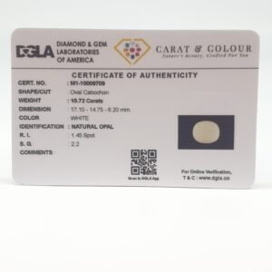 Natural Untreated Autralian White Opal, certified by DGLA. Contact us for further Certification by GIA / GII / IGI and Others.