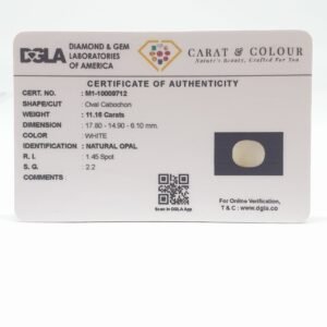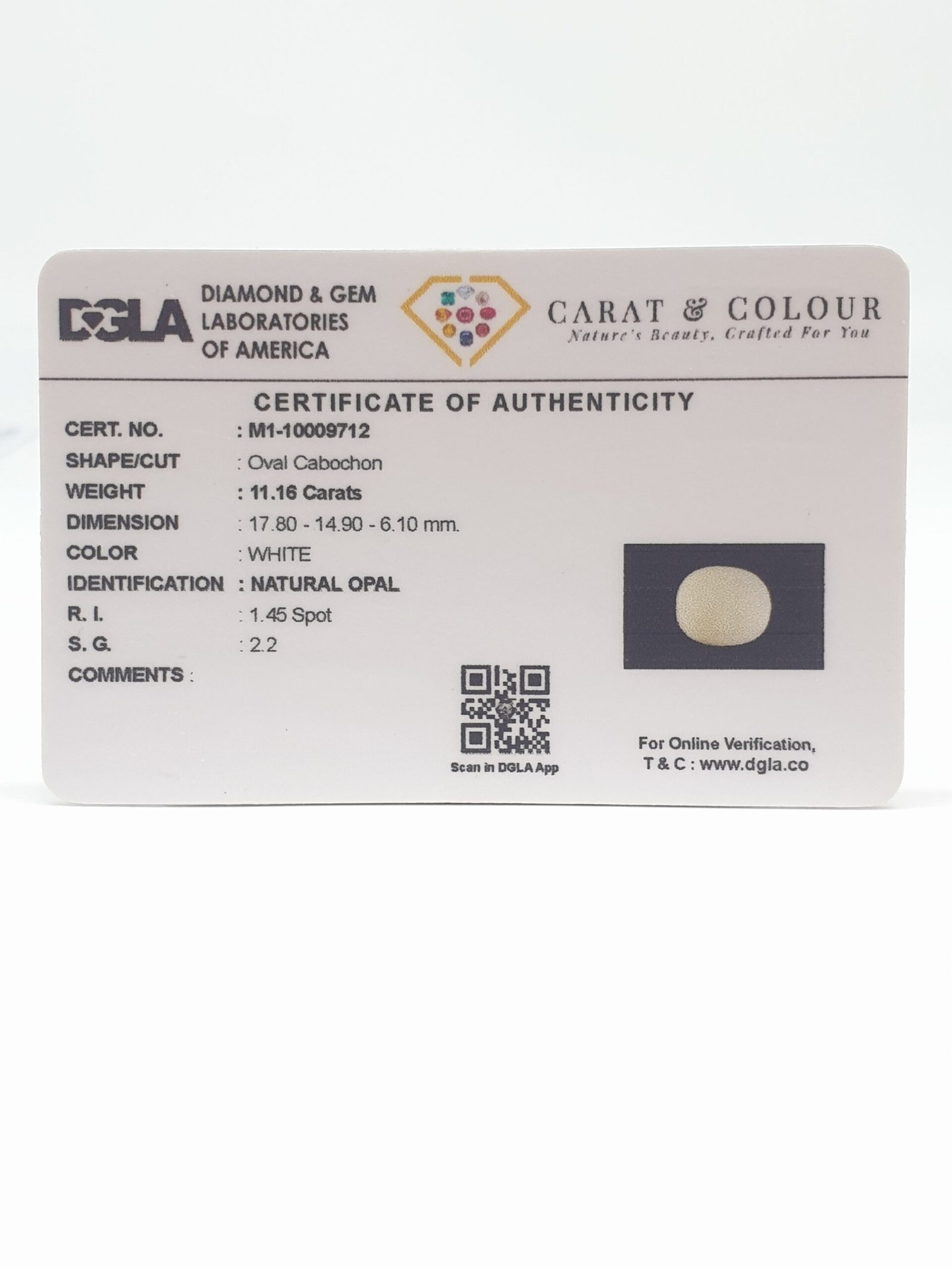 Natural Untreated Autralian White Opal, certified by DGLA. Contact us for further Certification by GIA / GII / IGI and Others.