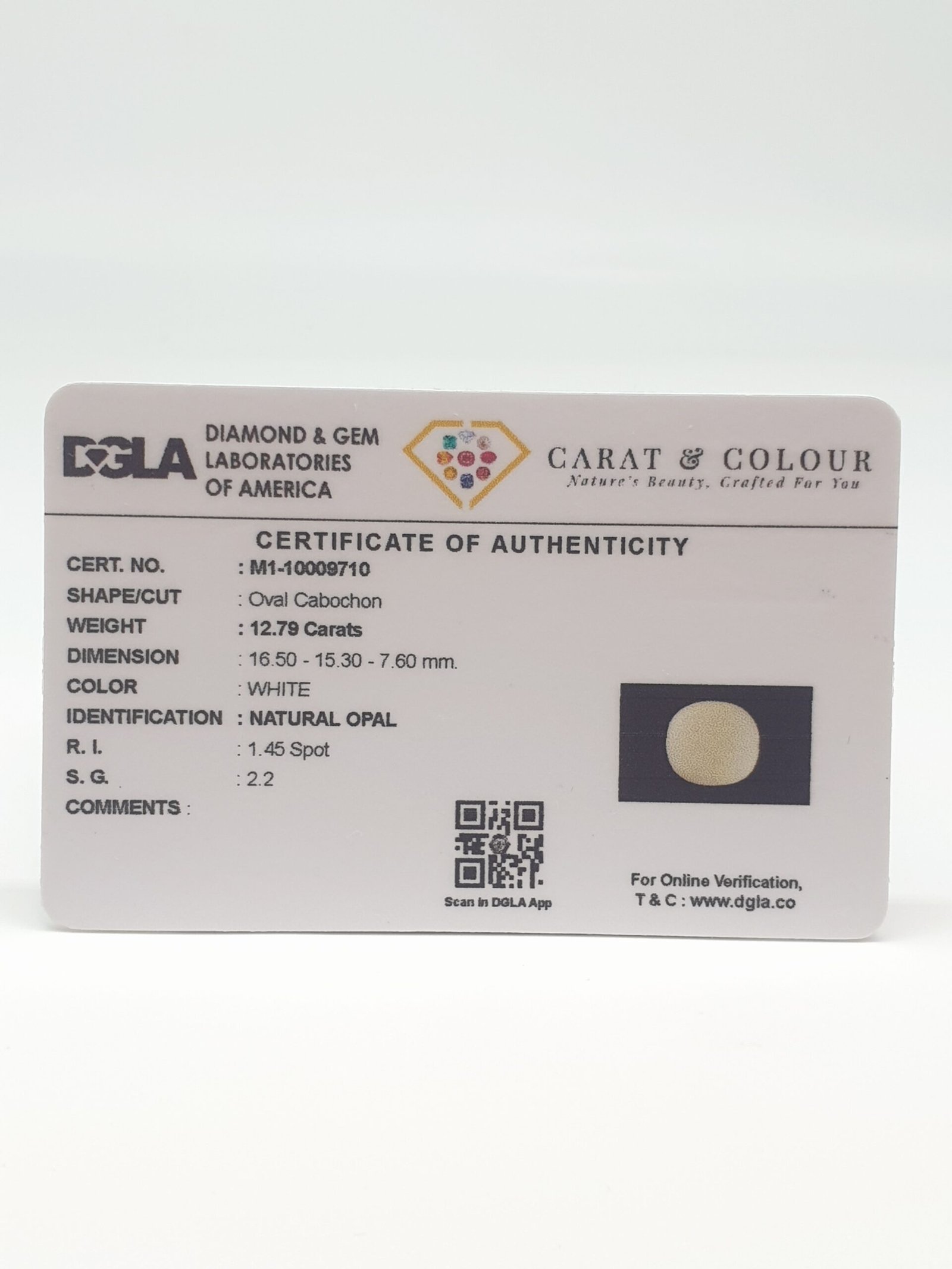Natural Untreated Autralian White Opal, certified by DGLA. Contact us for further Certification by GIA / GII / IGI and Others.