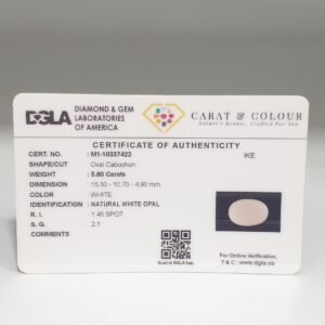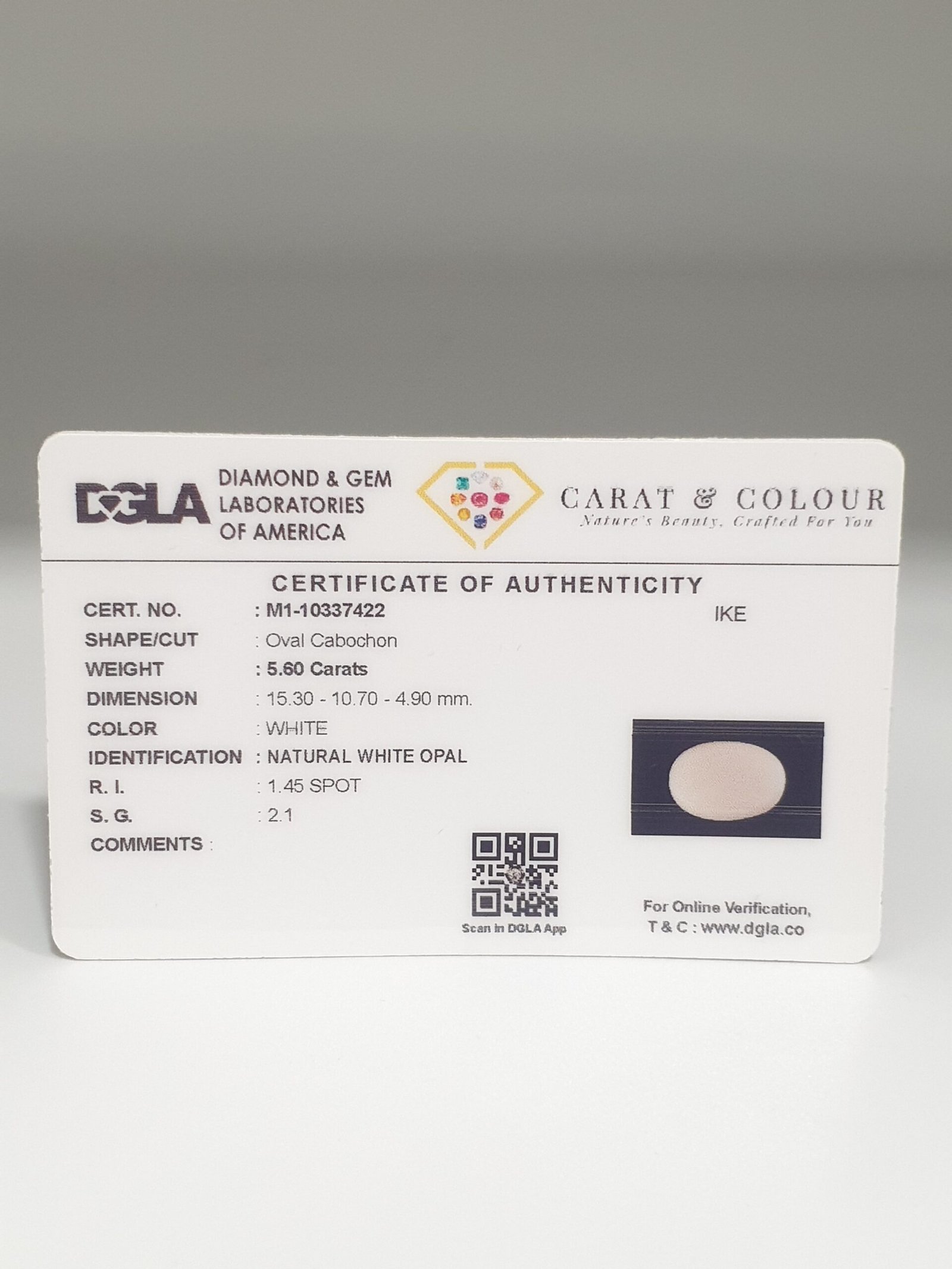 Natural Untreated Autralian White Opal, certified by DGLA. Contact us for further Certification by GIA / GII / IGI and Others.