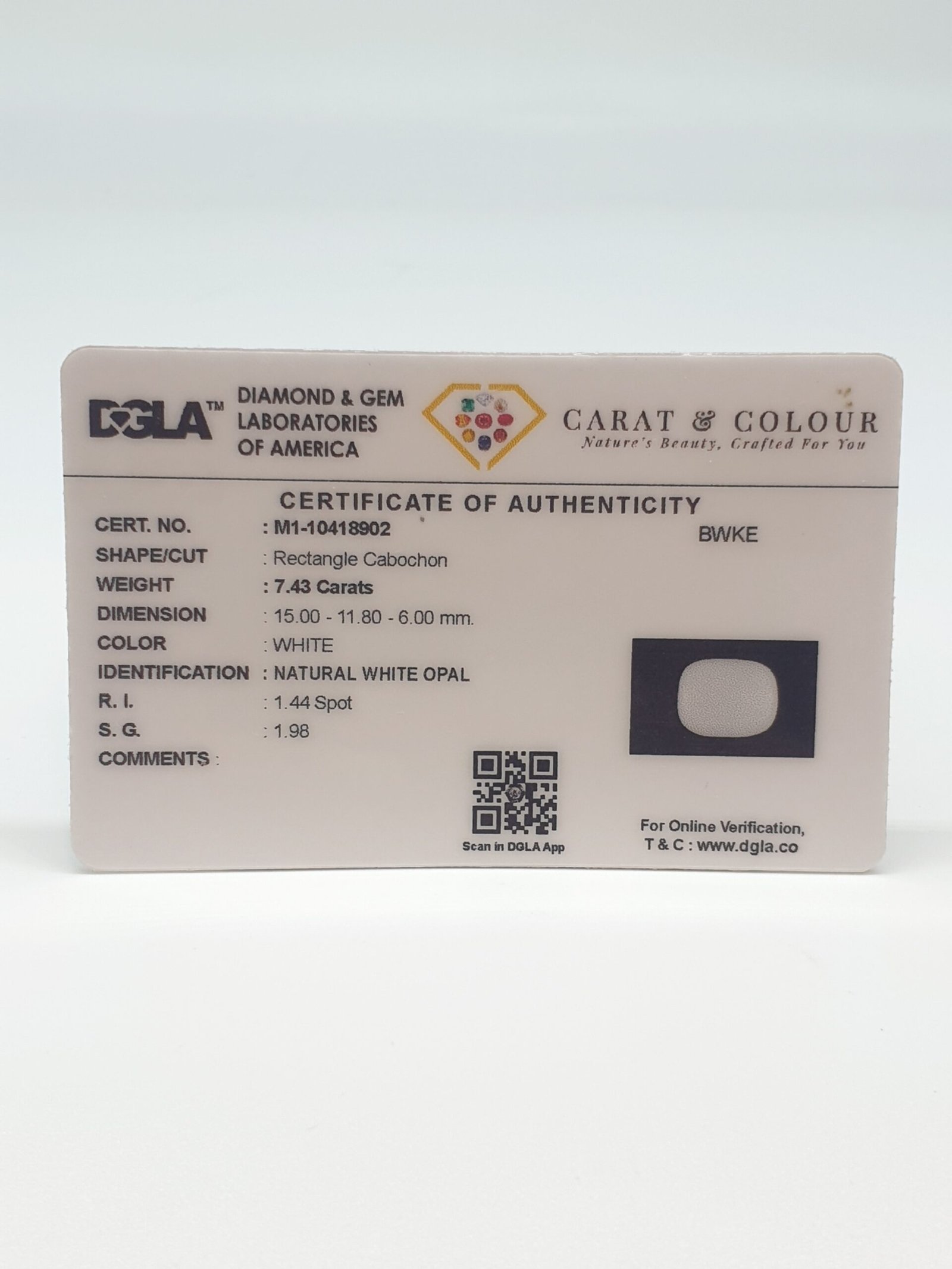 Natural Untreated Autralian White Opal, certified by DGLA. Contact us for further Certification by GIA / GII / IGI and Others.