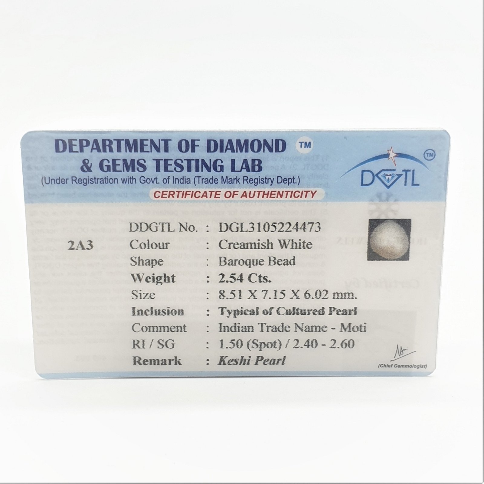 Natural Cultured Keshi Pearl (Moti) from Japan, certified by DDGTL. Contact us for further Certification by GIA / GII / IGI and Others.