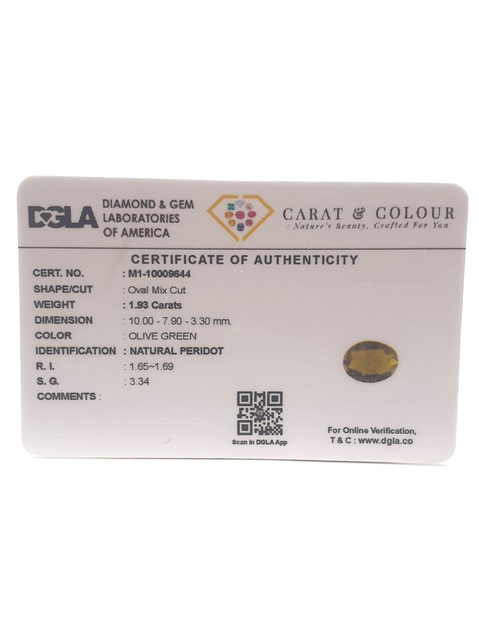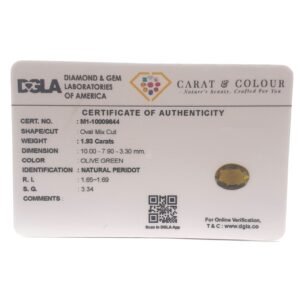 Natural Peridot, certified by DGLA. Contact us for further Certification by GIA / GII / IGI and Others.