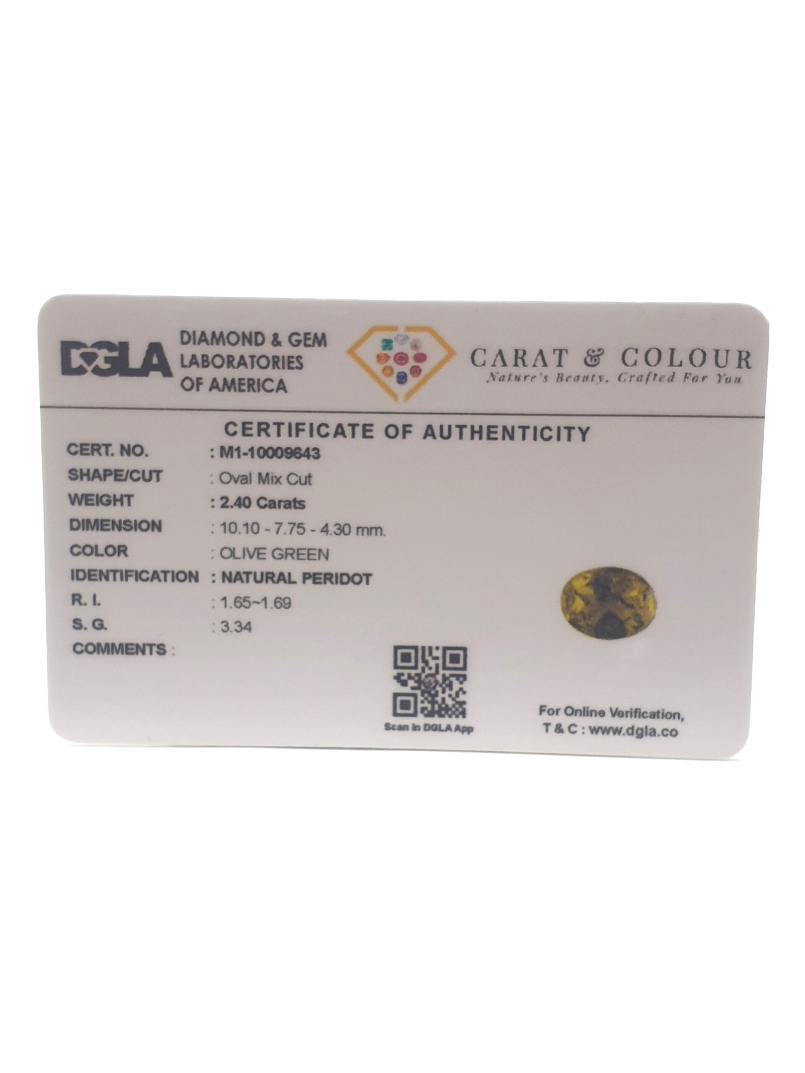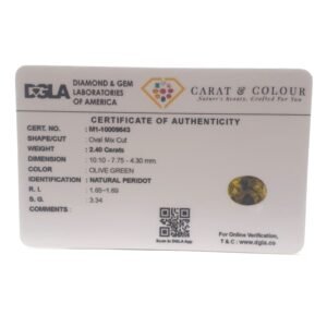Natural Peridot, certified by DGLA. Contact us for further Certification by GIA / GII / IGI and Others.