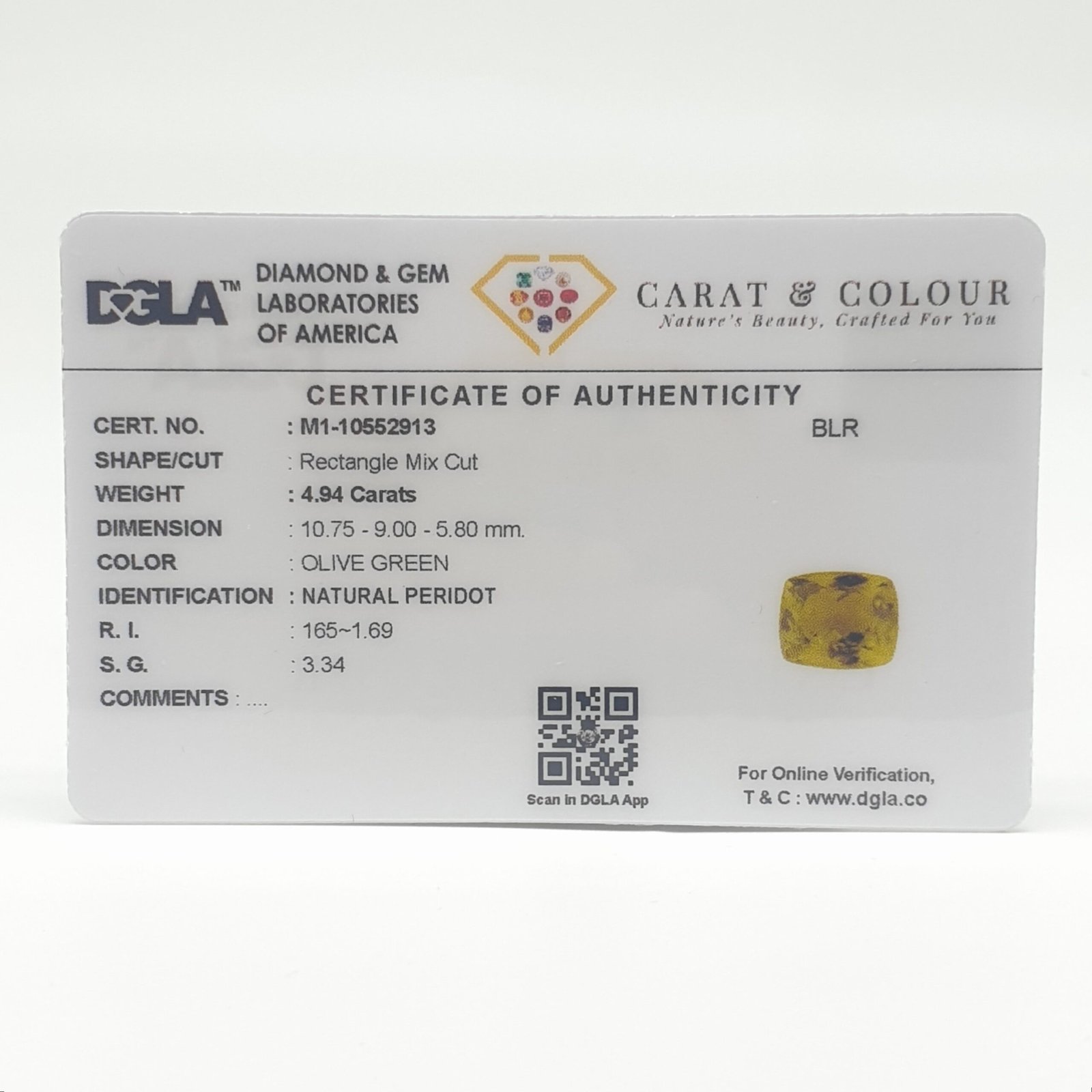 Natural Peridot, certified by DGLA. Contact us for further Certification by GIA / GII / IGI and Others.