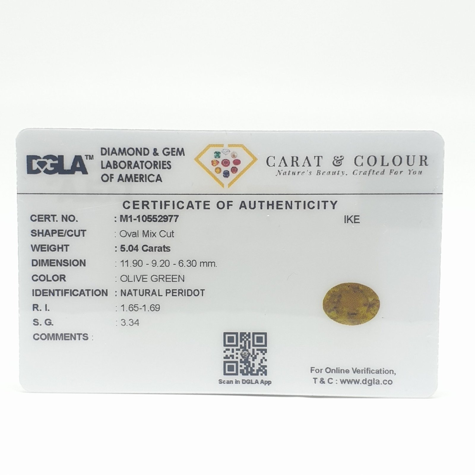 Natural Peridot, certified by DGLA. Contact us for further Certification by GIA / GII / IGI and Others.