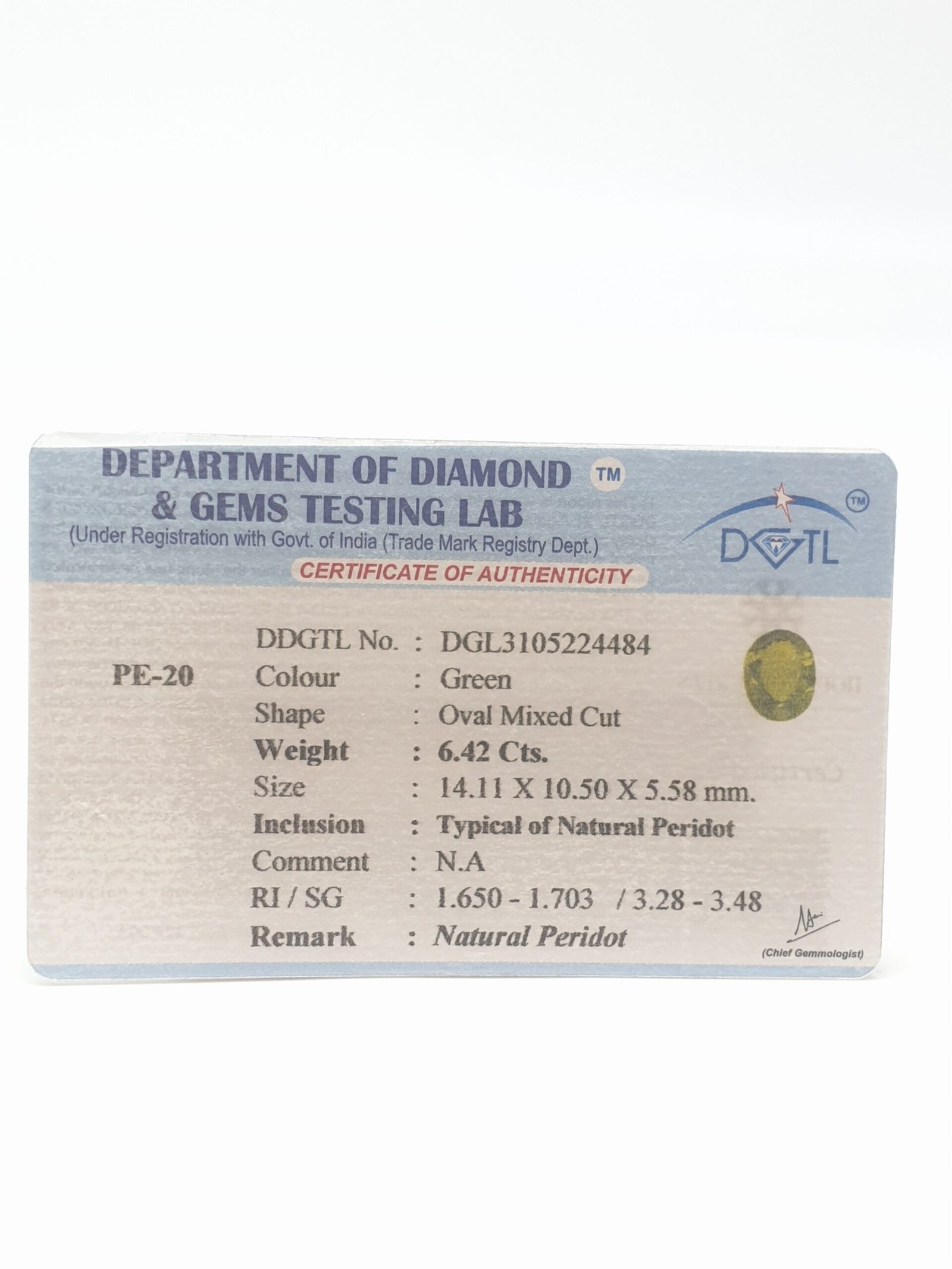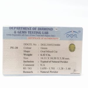 Natural Peridot, certified by DDGTL. Contact us for further Certification by GIA / GII / IGI and Others.