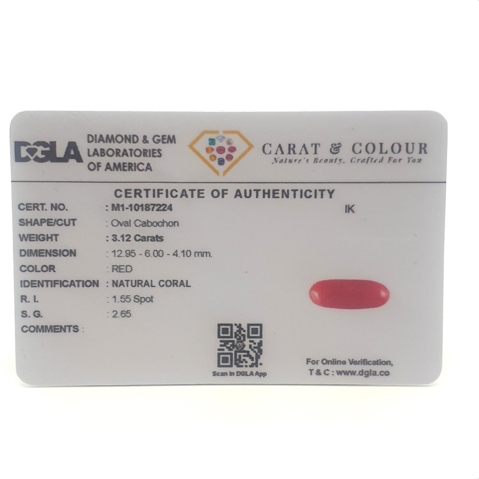 Natural Untreated Red Coral (Munga), certified by DGLA. Contact us for further Certification by GIA / GII / IGI and Others.