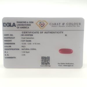 Natural Untreated Red Coral (Munga), certified by DGLA. Contact us for further Certification by GIA / GII / IGI and Others.