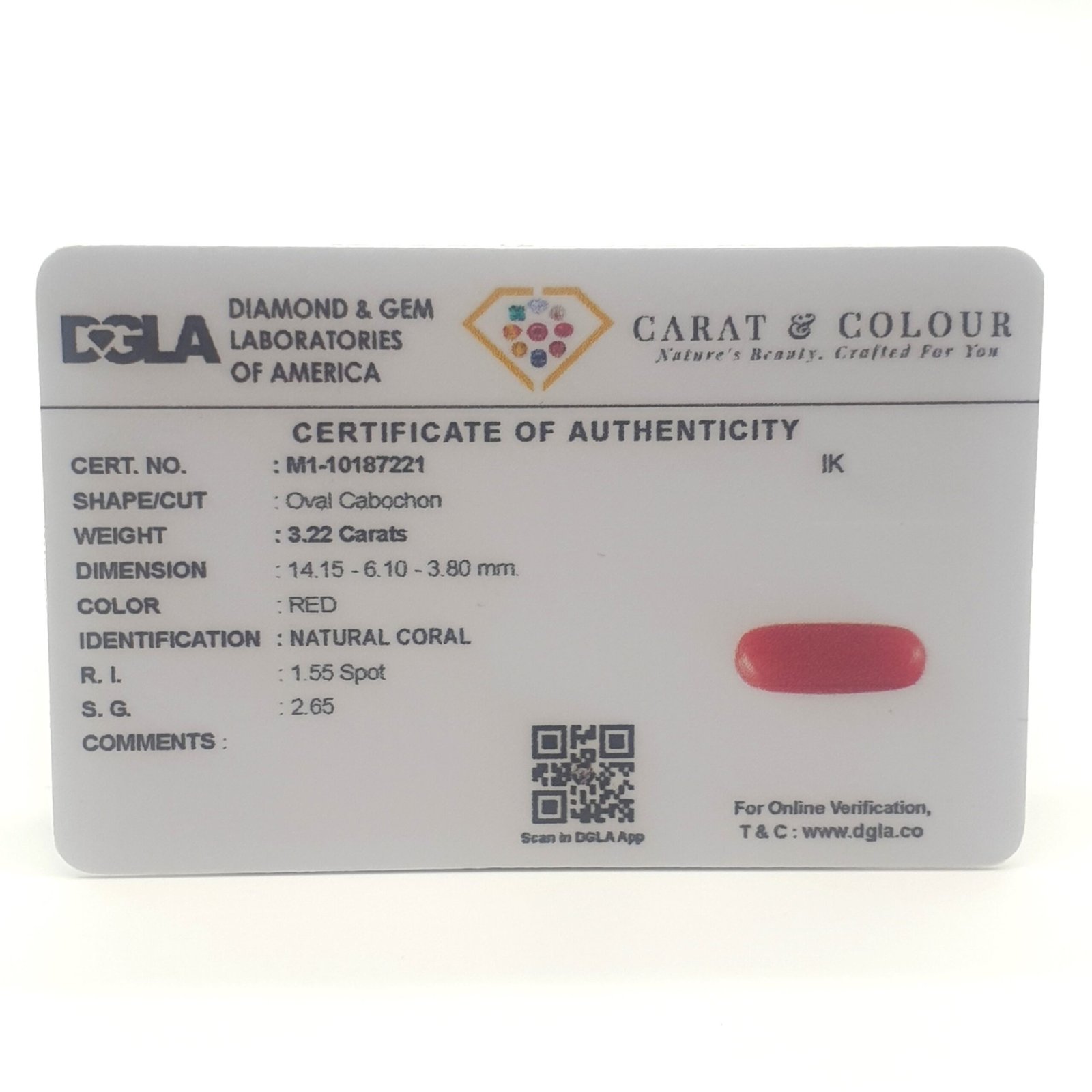 Natural Untreated Red Coral (Munga), certified by DGLA. Contact us for further Certification by GIA / GII / IGI and Others.