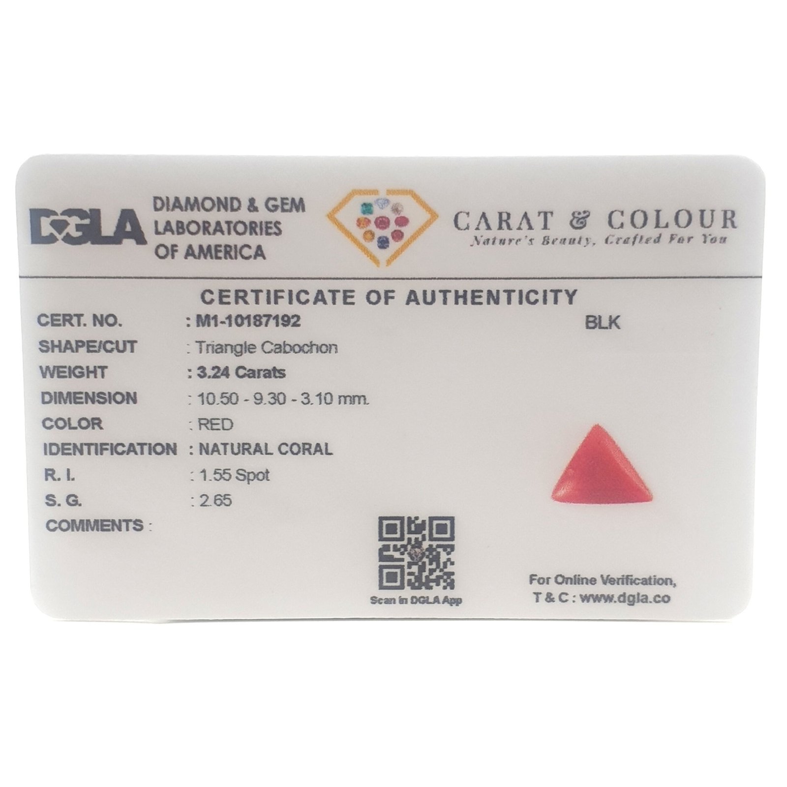 Natural Untreated Red Coral (Munga), certified by DGLA. Contact us for further Certification by GIA / GII / IGI and Others.