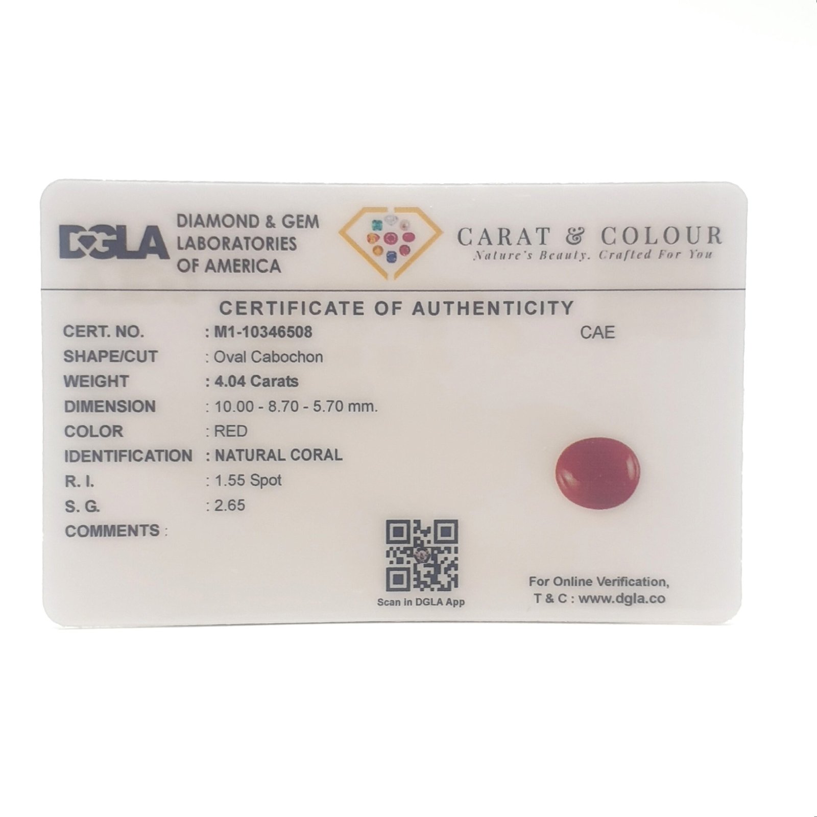 Natural Untreated Red Coral (Munga), certified by DGLA. Contact us for further Certification by GIA / GII / IGI and Others.