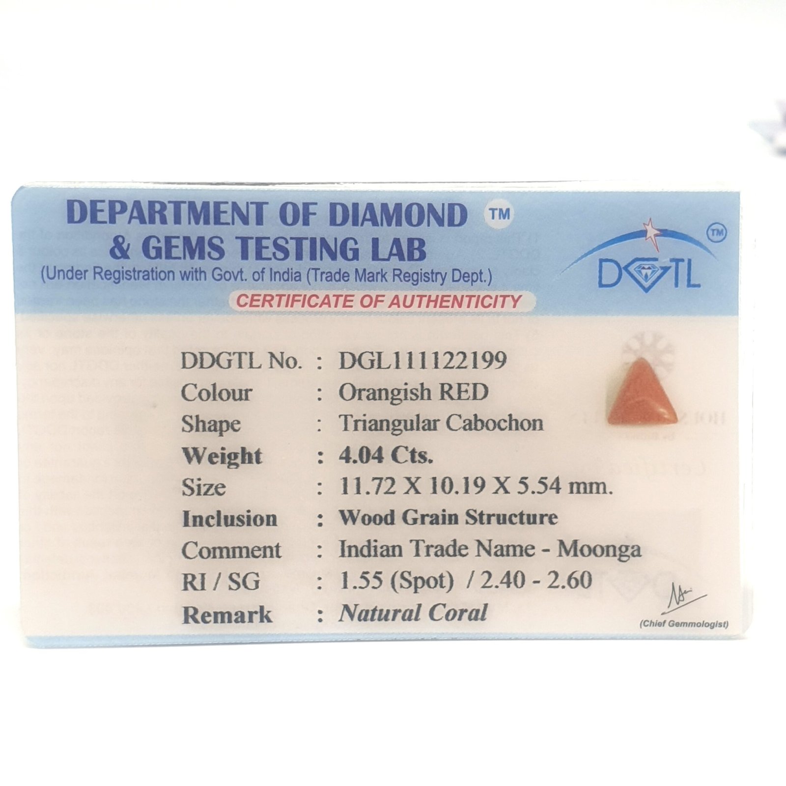 Natural Untreated Red Coral (Munga), certified by DGLA. Contact us for further Certification by GIA / GII / IGI and Others.