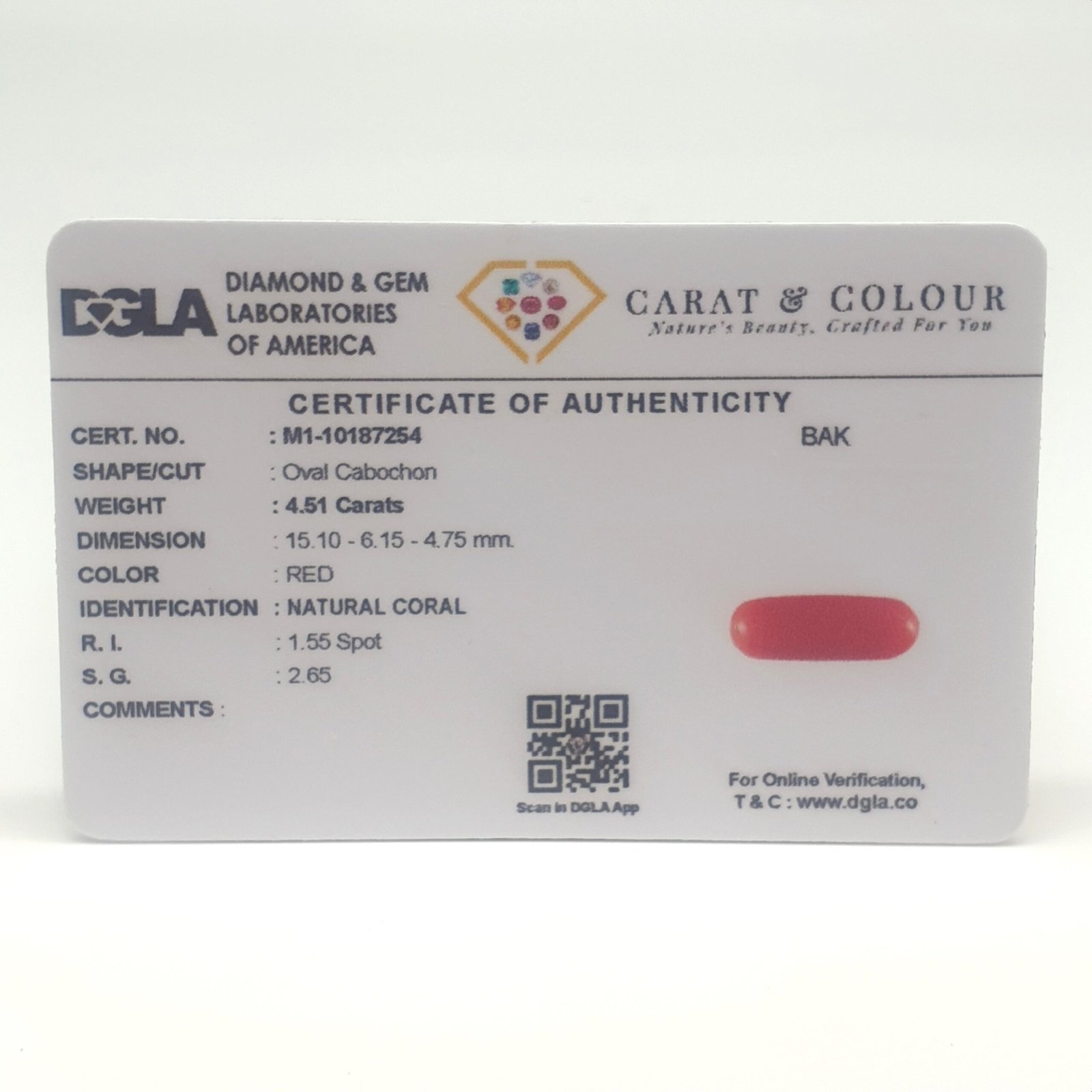 Natural Untreated Red Coral (Munga), certified by DGLA. Contact us for further Certification by GIA / GII / IGI and Others.