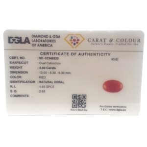 Natural Untreated Red Coral (Munga), certified by DGLA. Contact us for further Certification by GIA / GII / IGI and Others.