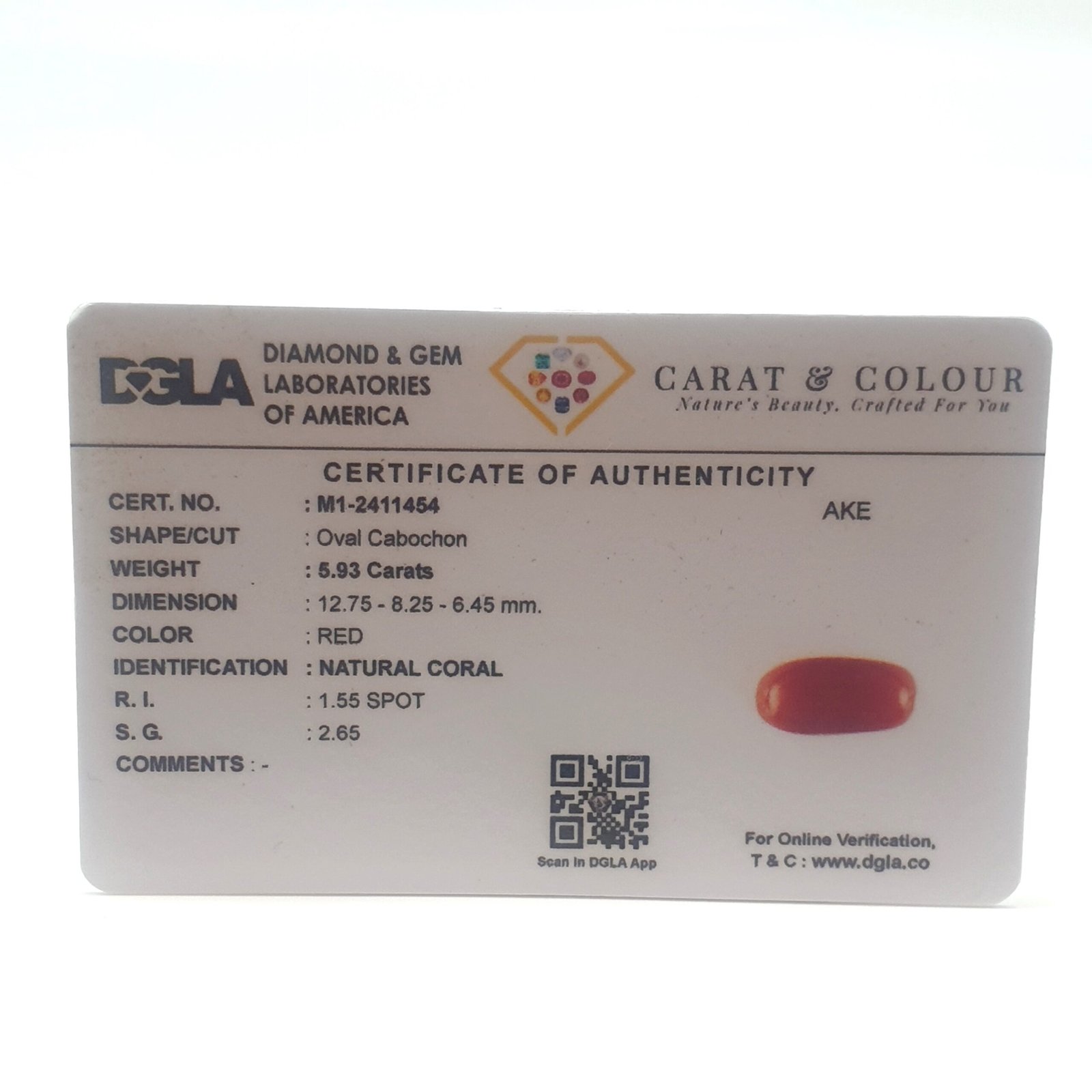 Natural Untreated Red Coral (Munga), certified by DGLA. Contact us for further Certification by GIA / GII / IGI and Others.