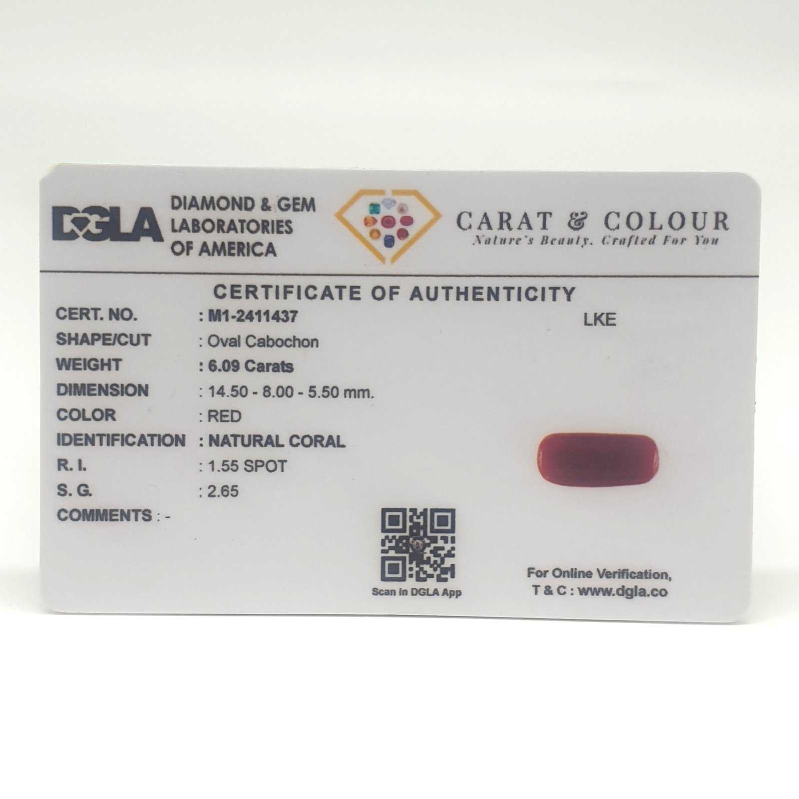 Natural Untreated Red Coral (Munga), certified by DGLA. Contact us for further Certification by GIA / GII / IGI and Others.