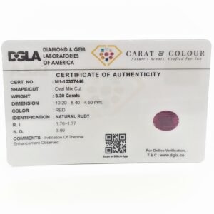 Natural Heat Treated Ruby (Manak) from Burma, certified by DGLA. Contact us for further Certification by GIA / GII / IGI and Others.