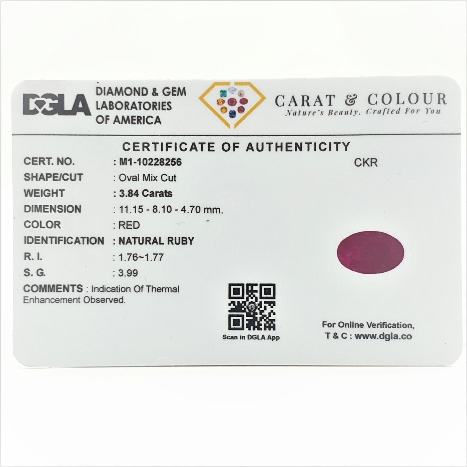 Natural Heat Treated Ruby (Manak) from Burma, certified by DGLA. Contact us for further Certification by GIA / GII / IGI and Others.