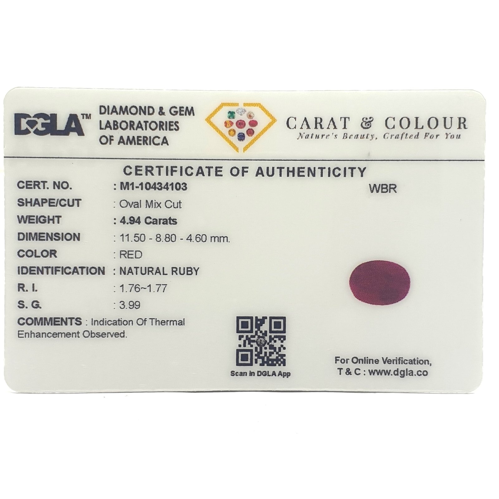 Natural Heat Treated Ruby (Manak) from Mozambique, certified by DGLA. Contact us for further Certification by GIA / GII / IGI and Others.