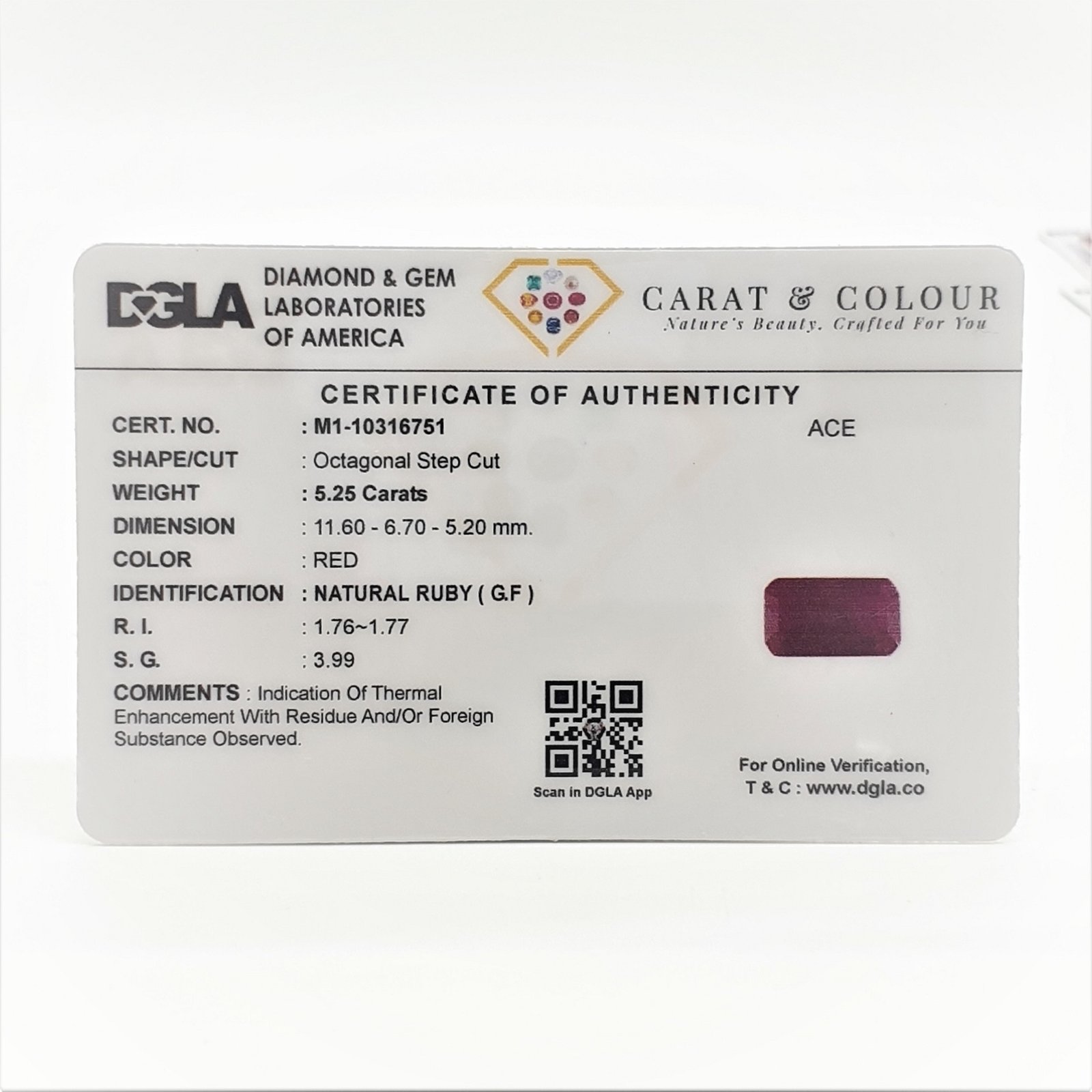 Natural Glass Filled Ruby (Manak) from Bangkok, certified by DGLA. Contact us for further Certification by GIA / GII / IGI and Others.