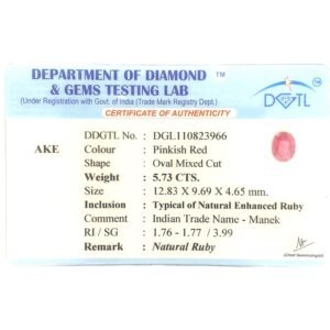 Natural Glass Filled Ruby (Manak) from Bangkok, certified by DGLA. Contact us for further Certification by GIA / GII / IGI and Others.