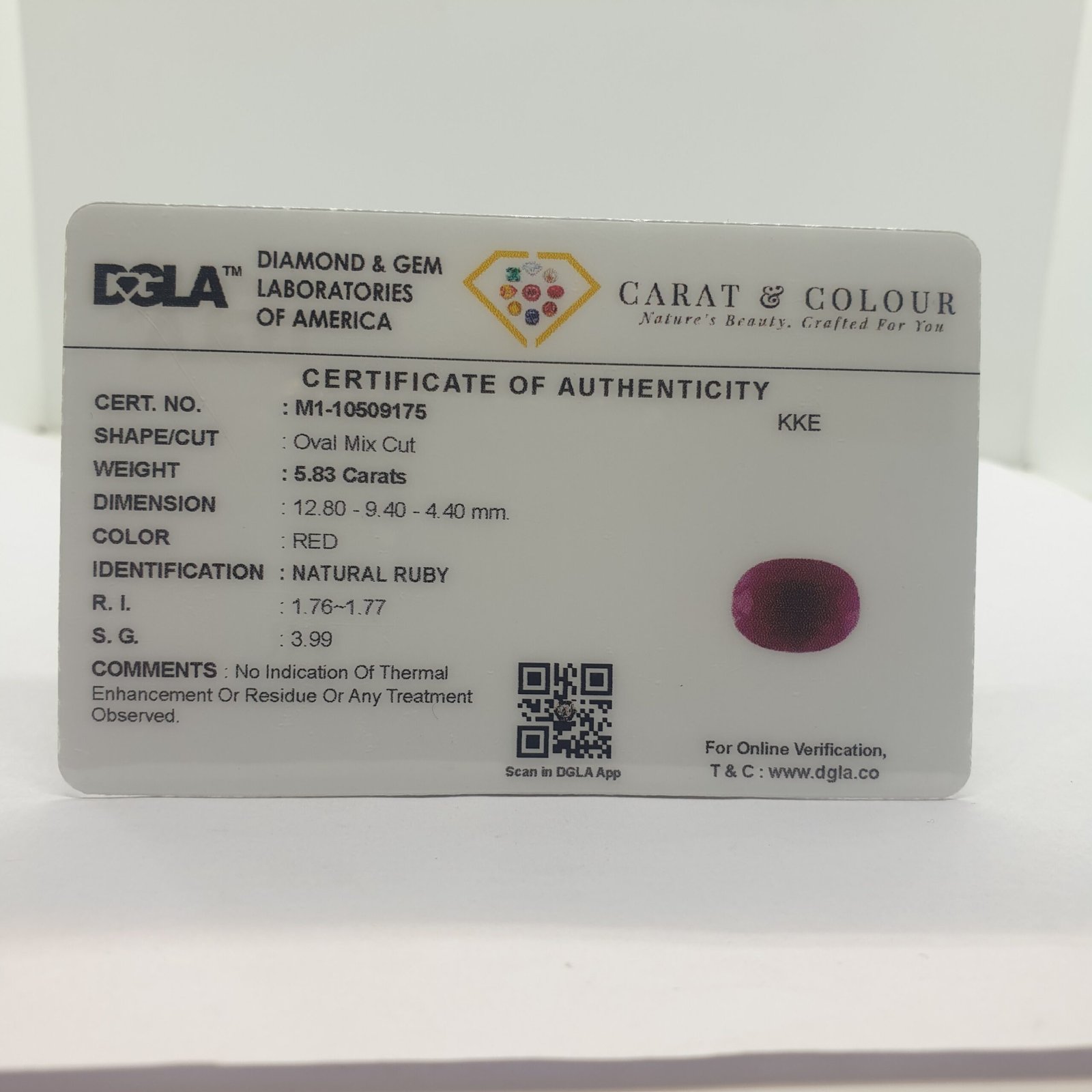 Natural Untreated Ruby (Manak) from Africa, certified by DGLA. Contact us for further Certification by GIA / GII / IGI and Others.